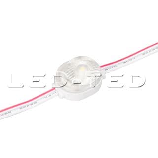 Светодиодный модуль, 1 светодиод smd 2835, Герметичный корпус IP67, пластик ABS, Цвет Холодный белый 7500-8000К, Световой поток 55 лм, Угол 170°, На проводе 40шт, Длина провода 113мм, расстояние между центрами модулей 137мм. Рекомендуемая глубина установки 40-80мм, Питание 12 В, мощность 0.36 Вт, Габариты ДxШxВ: 24х15х10.5мм Новая модификация Orion-R03 Высокая эффективность - 150лм/Вт, новая линза-широкий угол. Технология Constant Current