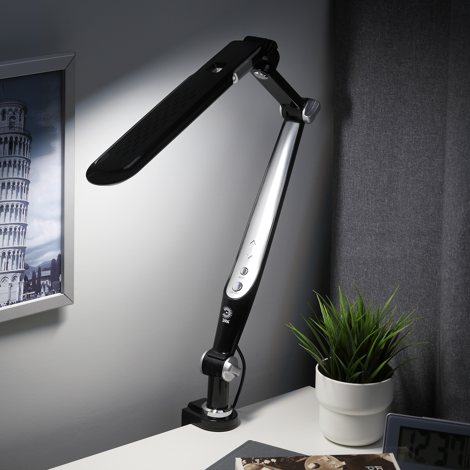 Настольный светильник ЭРА NLED-496-12W-BK со светодиодами (LED) в качестве источников света. Оснащен сенсорным управлением с возможностью выбора цветовой температуры (теплый, нейтральный или холодный свет). Плавный диммер для регулировки яркости. Светильник сохраняет выбранные настройки при включении-выключении. Высота плафона регулируется двухсекционной сгибающейся стойкой, направление света регулируется поворотом и наклоном плафона в любую сторону. Удобное крепление на струбцину.