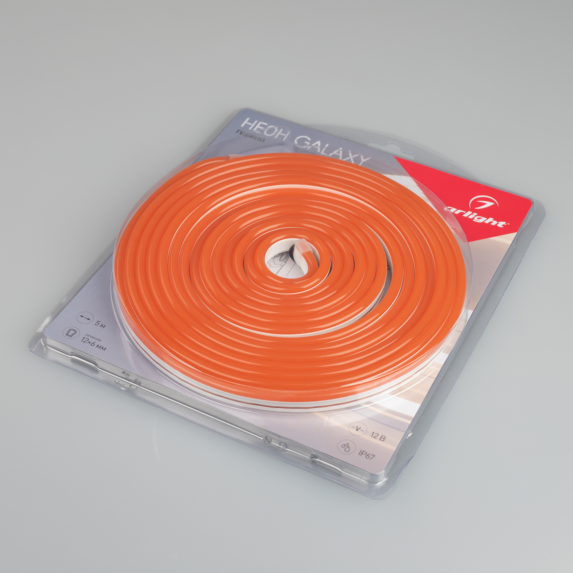ОБРАЗЕЦ гибкого неона GALAXY в силиконовой оболочке. Длина отрезка 500 мм. Светодиоды SMD2835, 120 шт-м, цвет ОРАНЖЕВАЯ. Сечение 12х6 мм, горизонтальный (боковой) изгиб, IP67, шаг резки 10 мм, мощность 12 Вт-м, напряжение питания DC 12V. Укомплектован заглушками и 30см проводом питания.