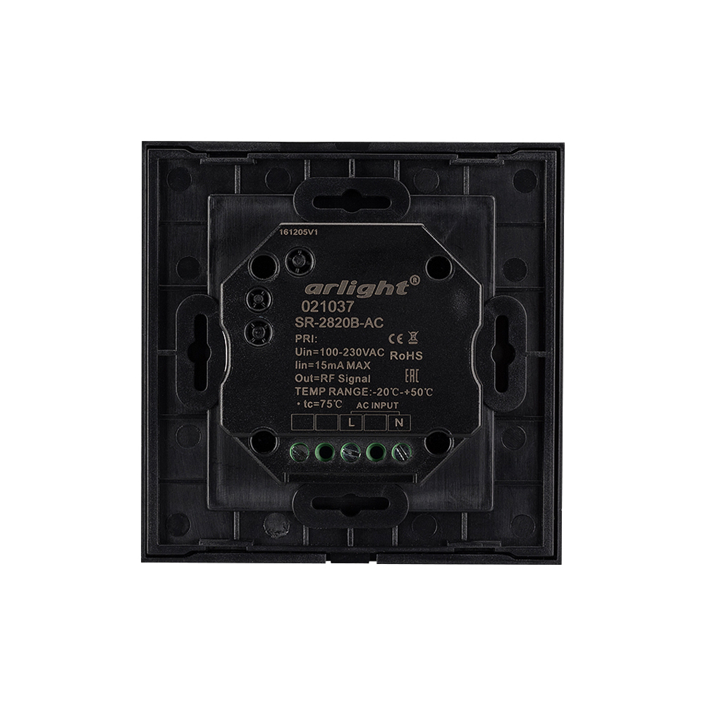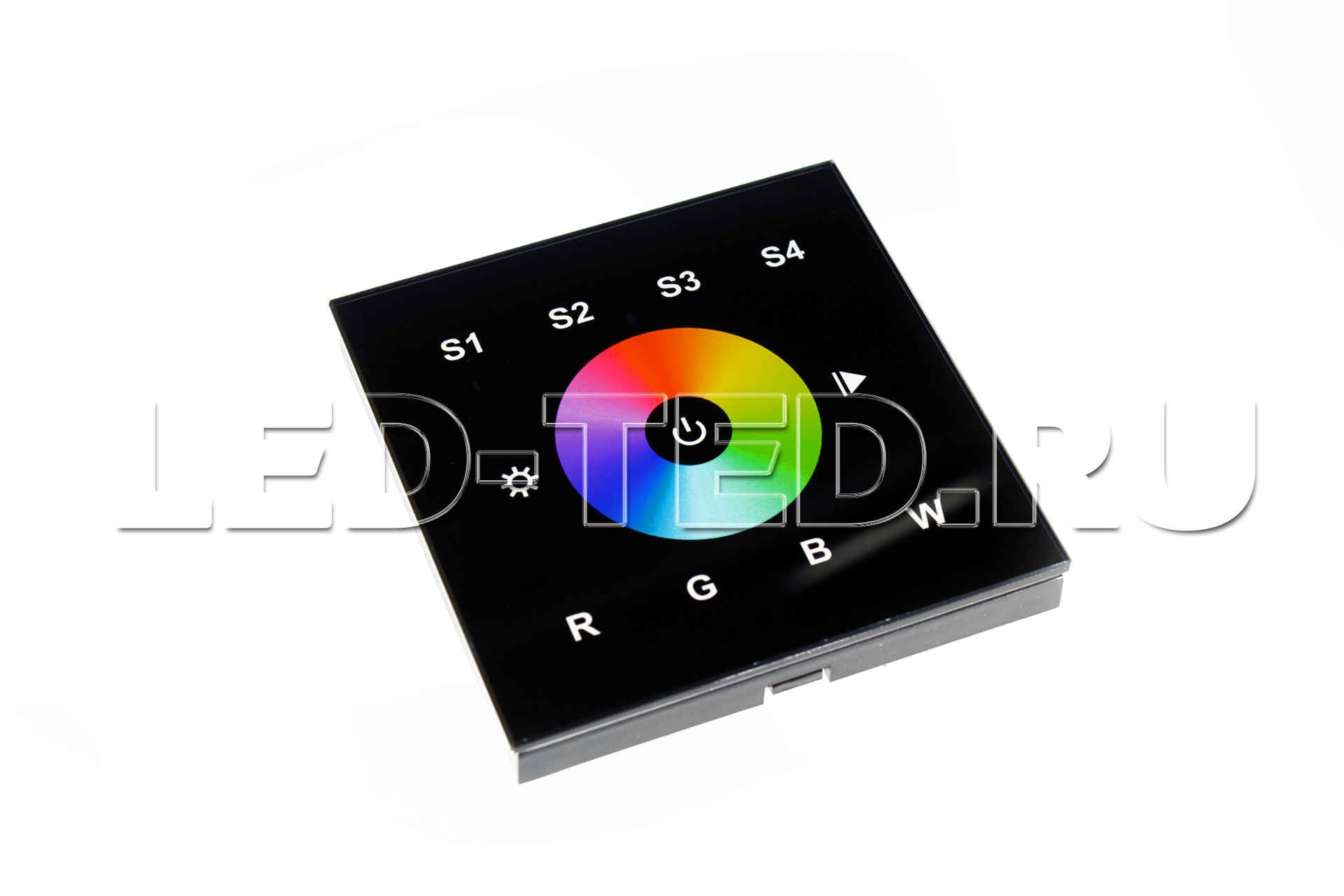 Встраиваемая стеклянная черная Touch-панель с сенсорным кольцом, раздельная регулировка 4 каналов - R,G,B,W. Управление 1 зоной по радиоканалу, память на 4 цвета по выбору. Питание 220В. Работает вместе с контроллером SR-1009xx. Размер 86x86x29 мм