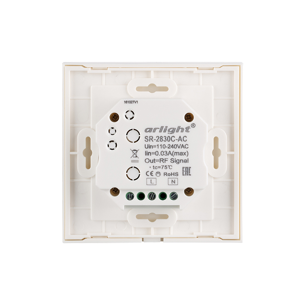 Встраиваемая стеклянная белая Touch-панель с сенсорным слайдером, 4 зоны, 1-2 зона CCT, 3-4 зоны RGB. Управление – по радиоканалу (совместимы с контроллерами SR-1009x). Питание 220 В. Размер 86x86x29мм.