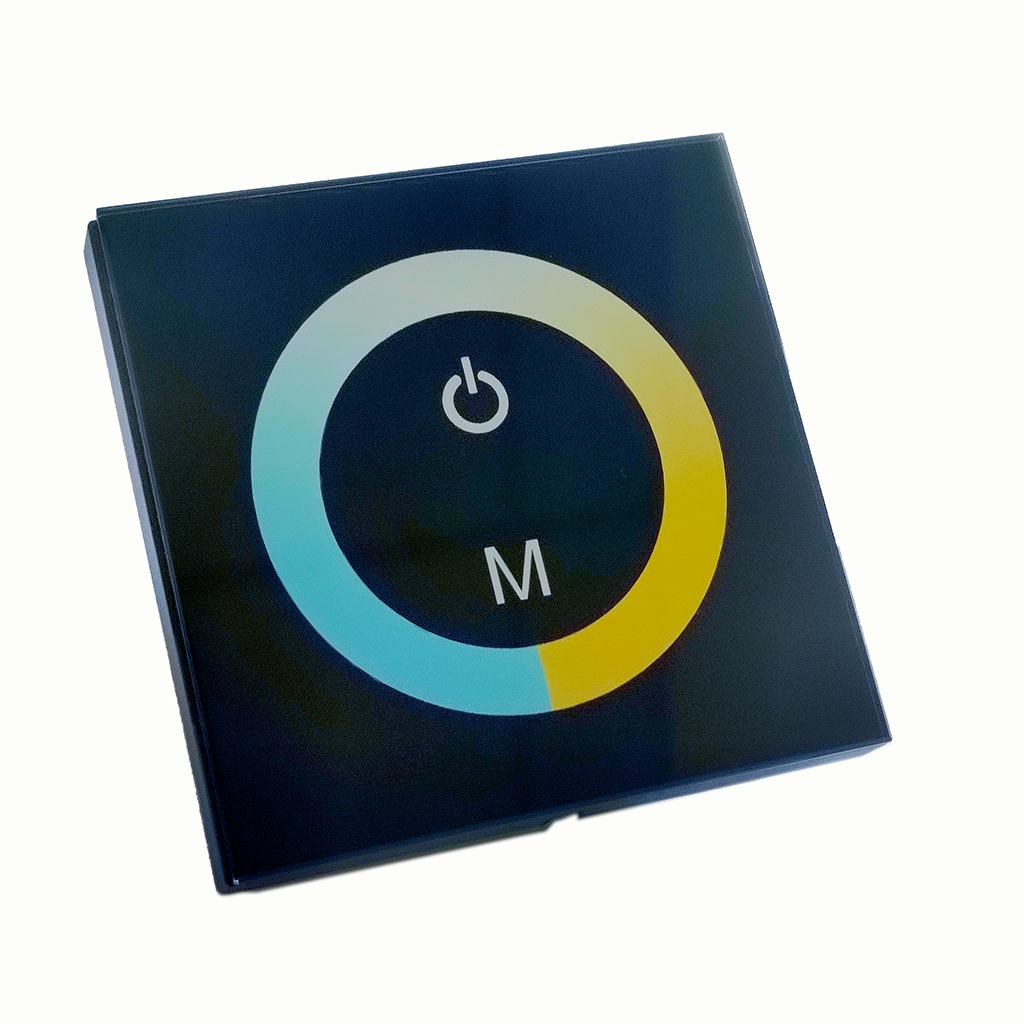 Настенный встраиваемый MIX-контроллер (2 канала) для управления цветовой температурой светодиодных MIX лент. Стеклянная Touch-панель с сенсорным кольцом, 11 режимов изменения белого цвета. Выходная мощность: 96/192Вт, 4A/канал, питание 12-24 В. Габариты 86х86х36мм.