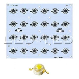 Алюминиевая плата. Размеры 112х135мм. Цвет белый. Для 24-ти (подключение 24S, последовательно) мощных светодиодов Emitter. Под блок линз 24B60.