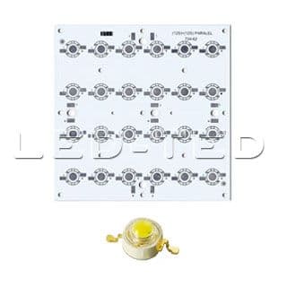 Алюминиевая плата. Размеры 120х120мм. Цвет белый. Для 24-ти (подключение 12S-12S, 2 серии параллельно по 12) мощных светодиодов Emitter. Подходят блок линзы MB Architect, 24B85D, 24B70, 24BST-E.