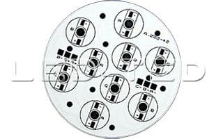 Алюминиевая плата. Диаметр d = 95 мм. Цвет белый. Для 9-ти (параллельно по 3) светодиодов R+G+B Emitter ARPL-, OS-, ES-.Под линзы 9B50D, 9B3570D.