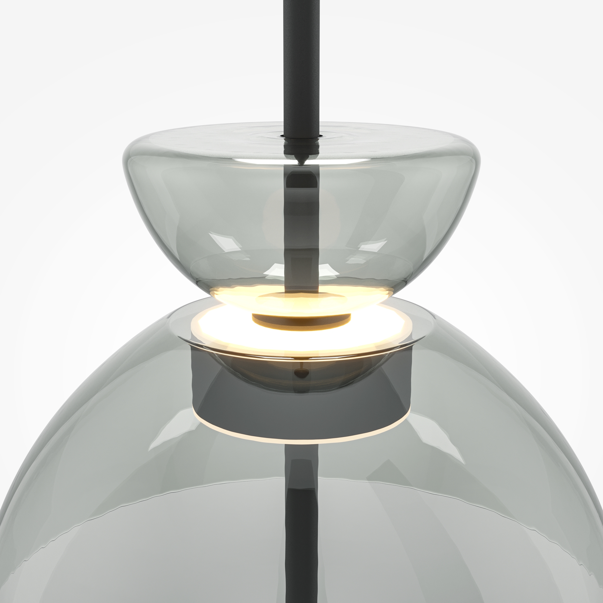 Материал арматуры металл, цвет черный. Уникальный дизайн минималистичных плафонов из стекла в трех цветах – дымчатый, прозрачный и серый. LED источник света, цветовая температура 3000К. Регулируемая длина тросов.