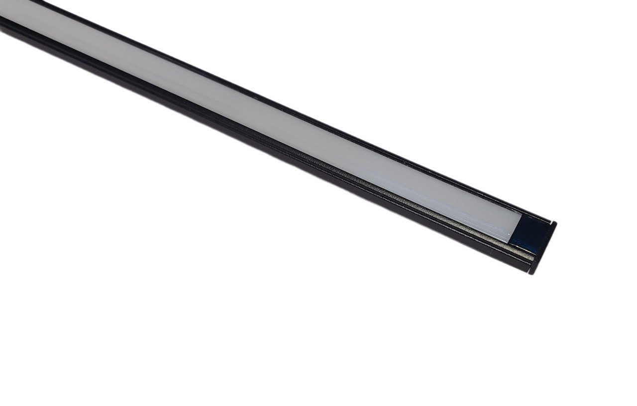 Черный п-образный профиль 15х6мм с белым экраном (рассеивателем) для светодиодных лент.