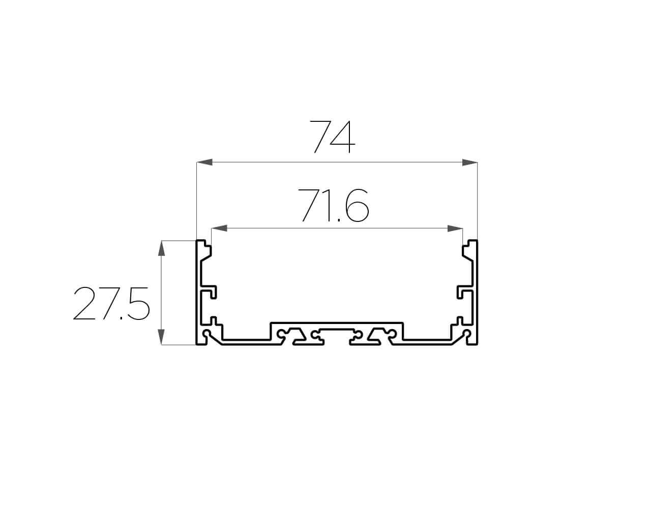 Габаритный размер: 2000x74x27