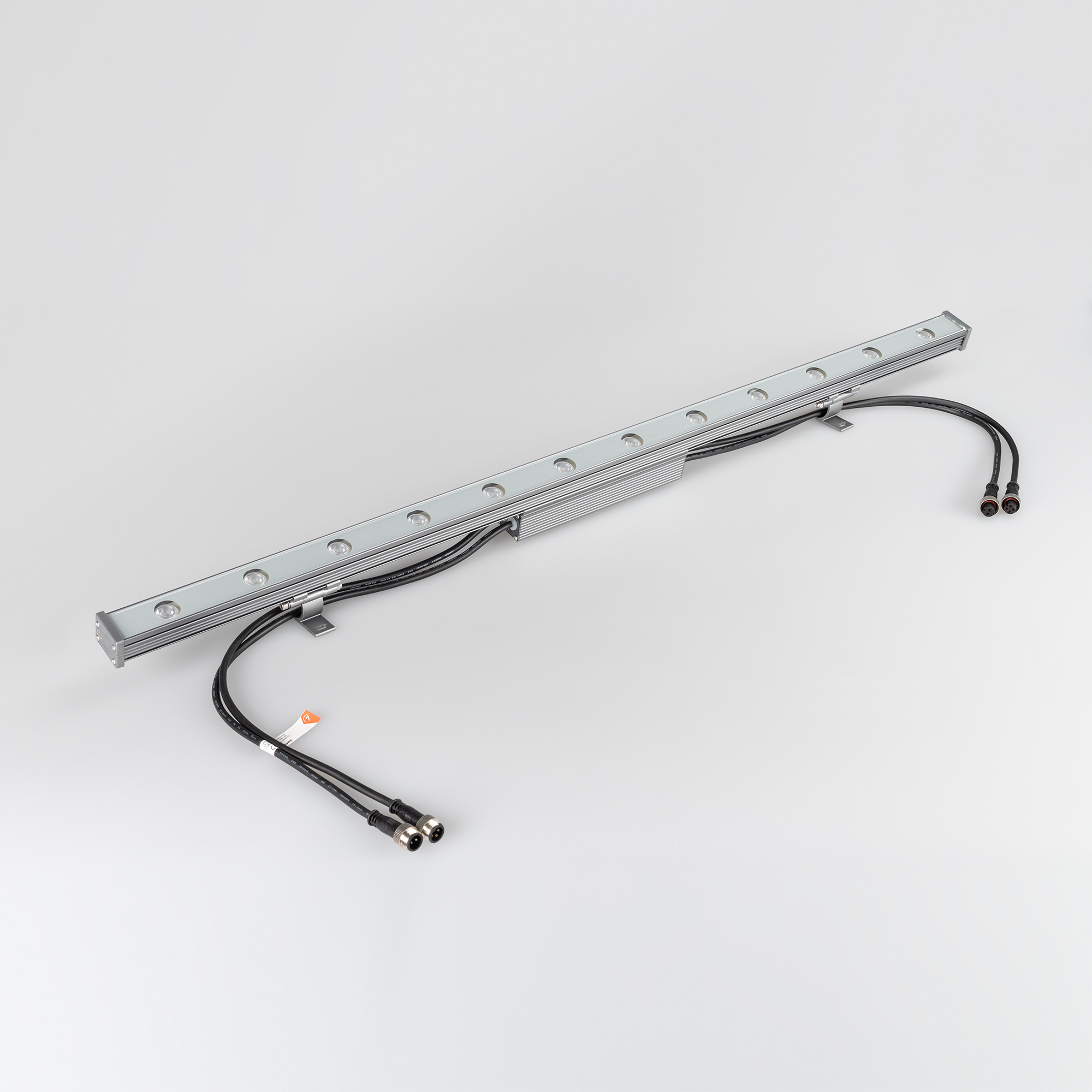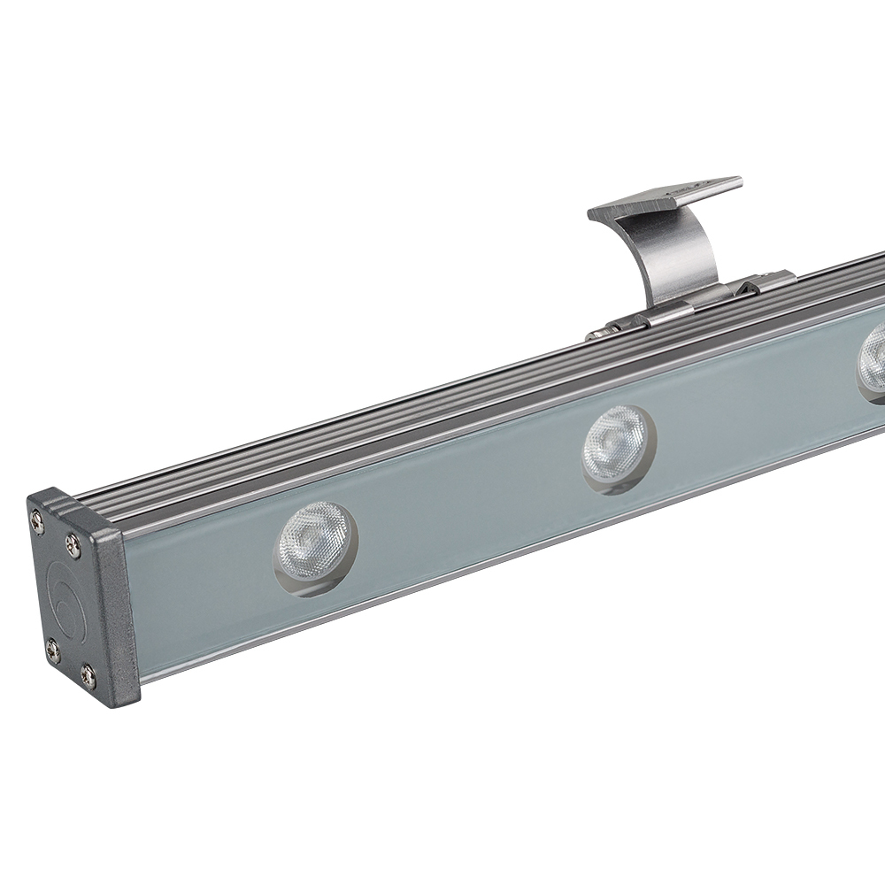 Ультратонкий линейный светодиодный прожектор. Мощность 12W, напряжение питания DC 24V. Светодиоды EPILED 12 штук. Цвет светодиодов RGB, управление по протоколу DMX512, угол рассеивания 30°. Корпус: алюминиевый сплав и армированное стекло. Цвет корпуса серый, степень влагозащиты IP65. Габариты 1000x40x30мм.