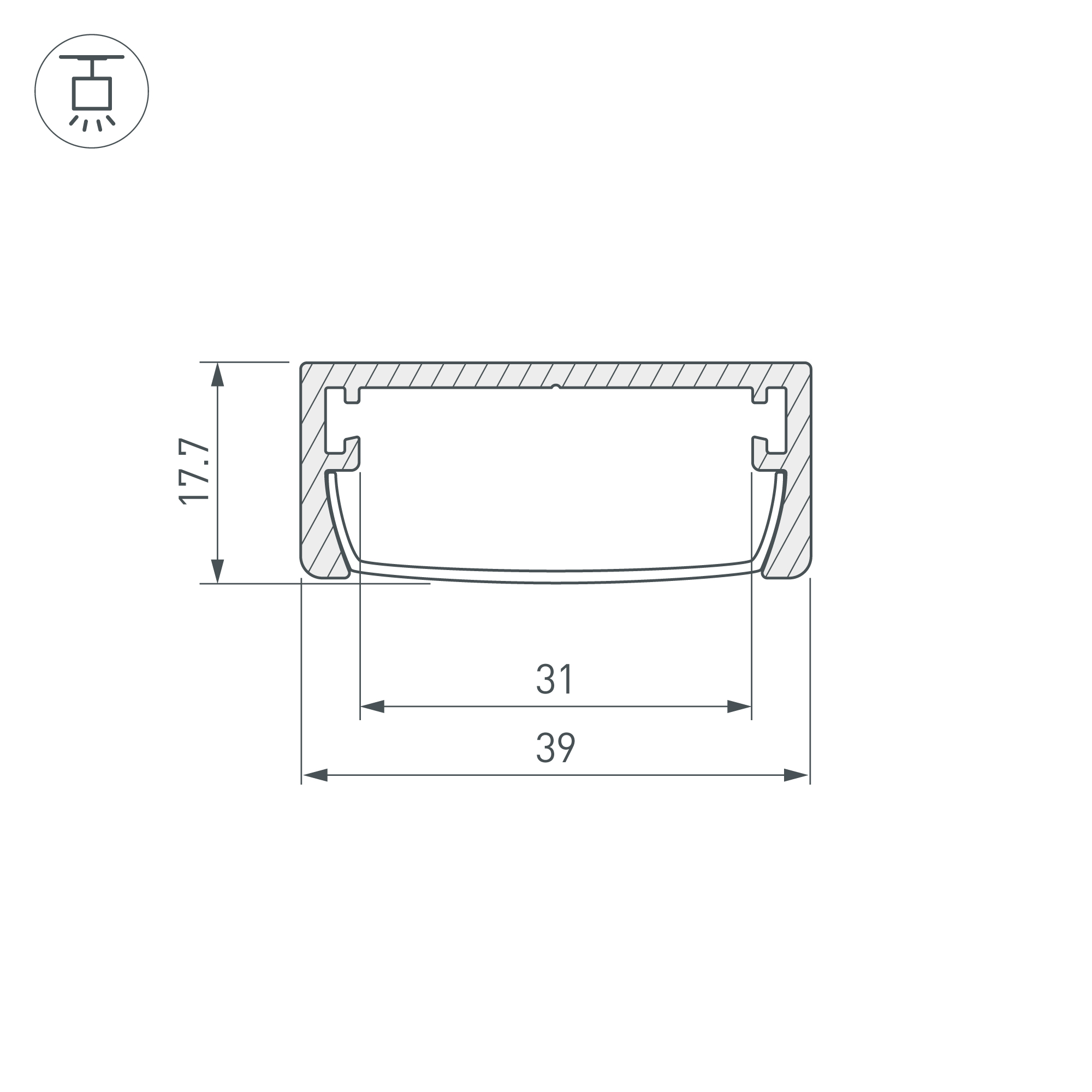 Подвесной профиль для лент шириной до 31мм. Подходит плоский экран ARH-WAVE-2000, заглушки, держатель (отдельно). Размер: 2000х39х17,7 мм. Цена за 1м. 024378