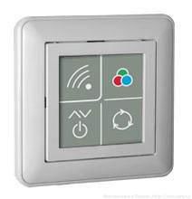 При коротком нажатии контроллер включает/выключает режим автоматической смены цвета. В этом режиме он запускает плавный перебор цветов. После включения режима смена цветов начинается с самой высокой скоростью перехода. Перебор осуществляется среди 1530 цветов по кругу (переход через белый цвет не выполняется). При длительном нажатии (около 2 секунд, пока индикаторный светодиод на пульте не замигает) контроллер автоматически переключает скорость смены цветов на одну позицию. Всего доступно 3 скорости, включая самую высокую. Команда длительного нажатия отрабатывается один раз, т.е. для переключения на следующую позицию скорости нужно убрать нажатие и снова произвести длительное удержание сенсора.