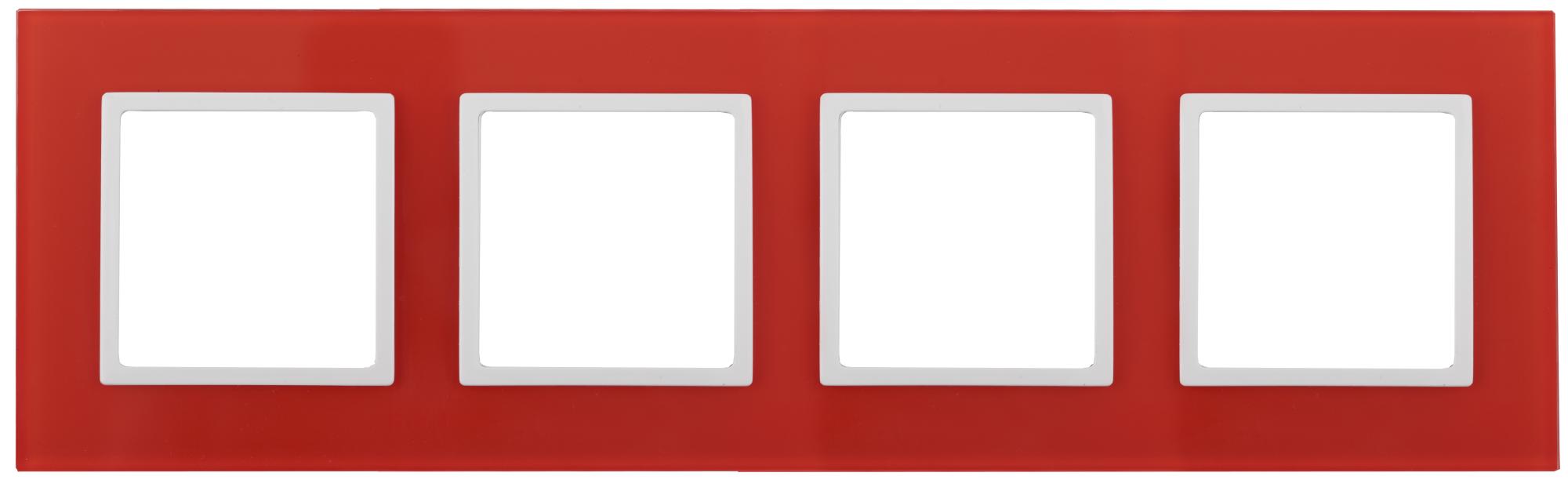 —Рамка на 4 поста стекло Elegance красный+бел 14-5104-23