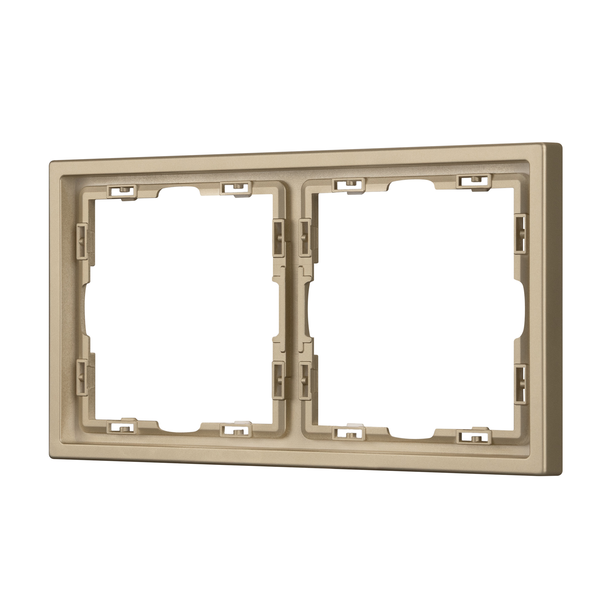 Рамка пластиковая на 2 поста, под встраиваемый механизм. Цвет - золотой, с Soft-Touch покрытием. Среднего уровня герметичности IP20. Ориентация монтажа горизонтальная.