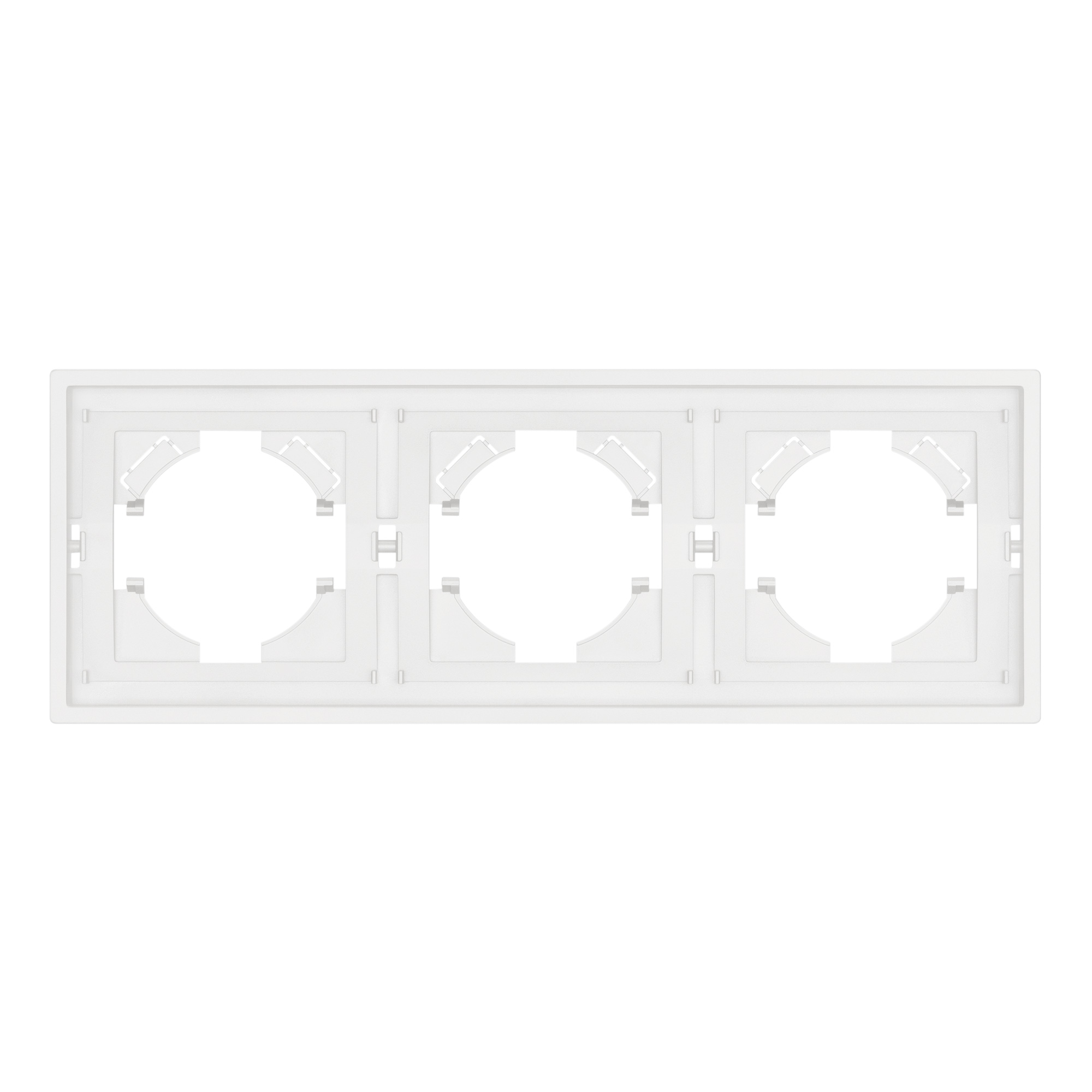 Рамка пластиковая на 3 поста, под встраиваемый механизм. Цвет - белый, с Soft-Touch покрытием. Среднего уровня герметичности IP20. Ориентация монтажа горизонтальная.