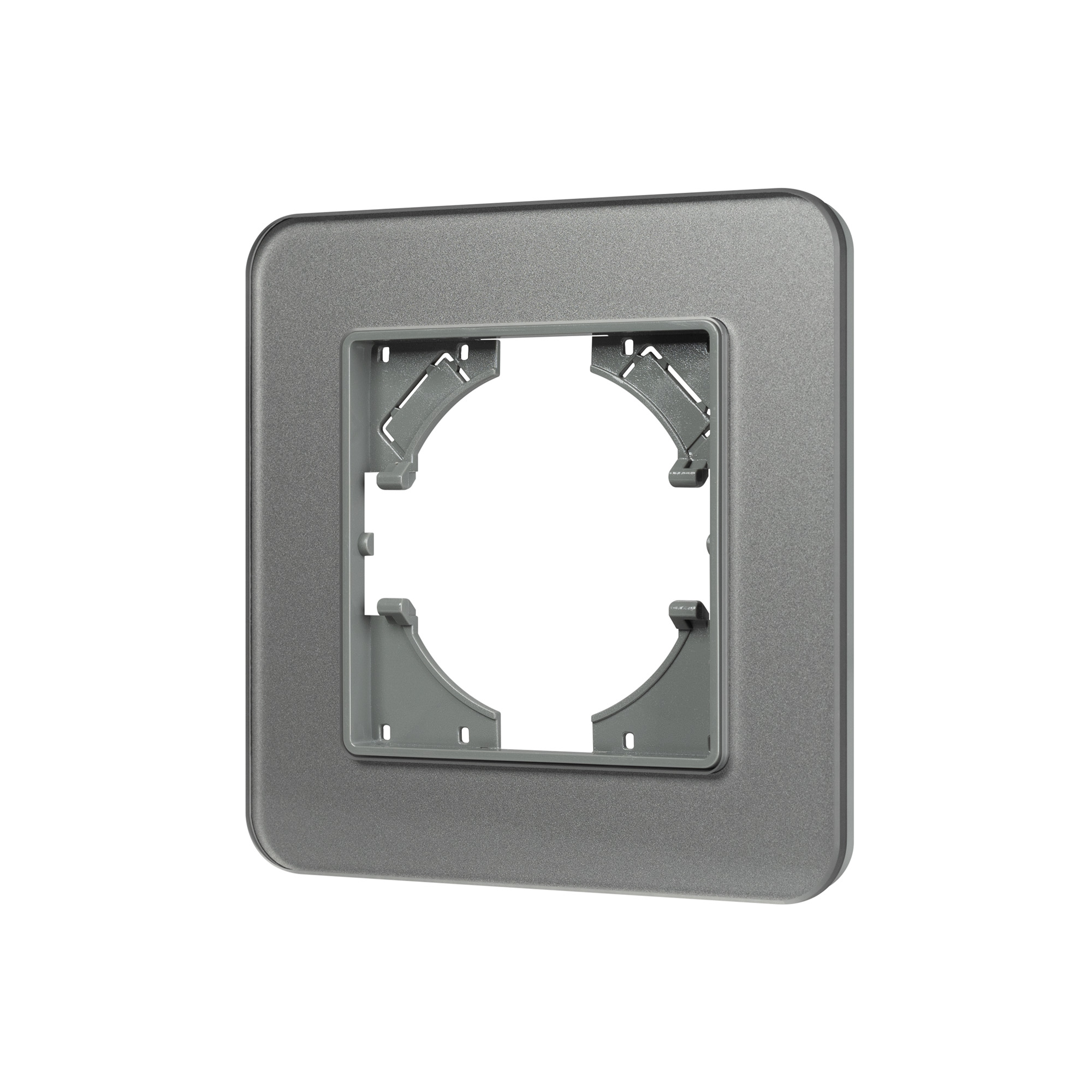 Рамка стеклянная на 1 пост, под встраиваемый механизм. Цвет - серый. Среднего уровня герметичности IP20. Ориентация монтажа - горизонтальная (основным ориентиром служат посадочные выступы для накладки механизма).