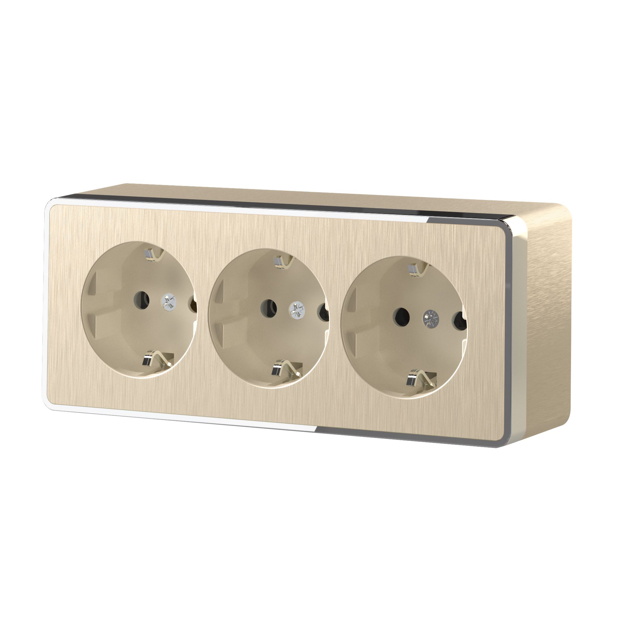 Розетка тройная с заземлением и шторками Gallant (шампань рифленый) W5073110