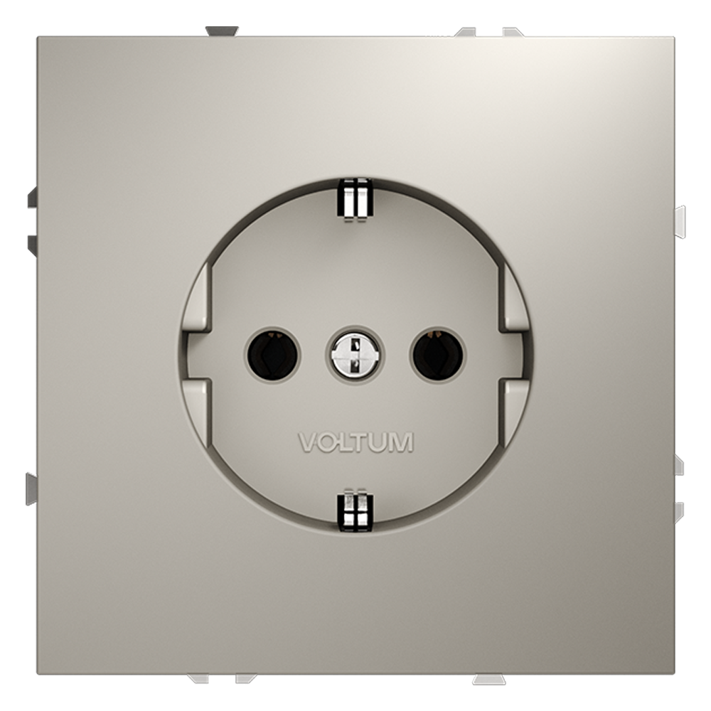 Простота установки и демонтажа, стильный дизайн и высокое качество делают розетки Voltum идеальным выбором для дома, офиса или любых других помещений, соответствующих инструкции по эксплуатации. Корпус. Внешние накладки и корпус выполнены из поликарбоната — долговечного и безопасного материала. Он не разлагается под действием ультрафиолета и стойко выдерживает повышенные температуры, вызванные протекающими токами. Конструктивные особенности. Контактные пары выполнены из бронзы, а заземляющие контакты — с дополнительным гальваническим покрытием. Бронза обеспечивает высокую безопасность при подключении электроприборов и эффективную бесперебойную передачу тока, сохраняя передаточное усилие, что повышает срок безотказной эксплуатации.