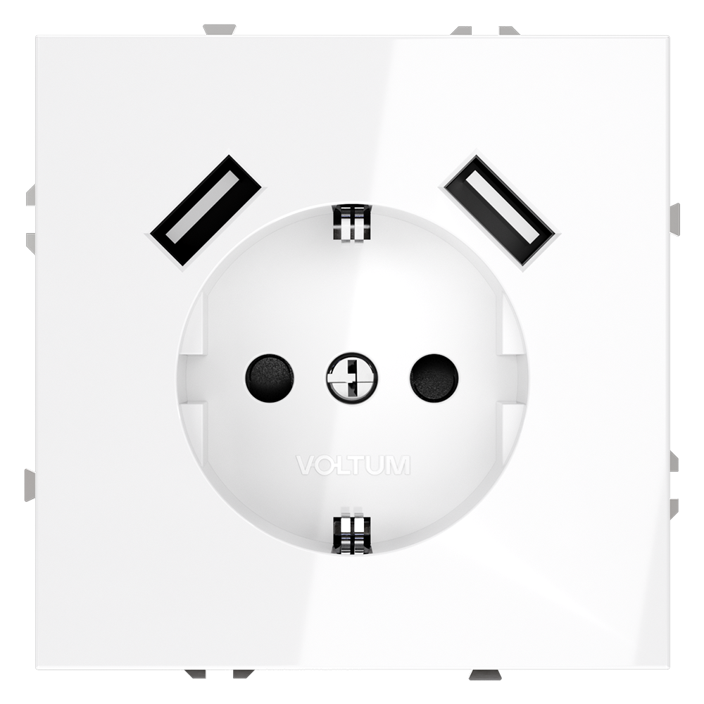 —Розетка встраиваемая VOLTUM S70 с заземлением и защитными шторками 16А с USB A+A (белый глянцевы