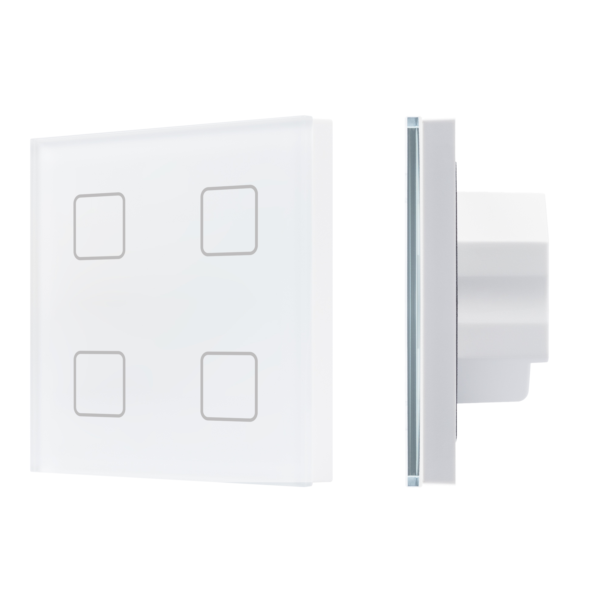 Встраиваемая стеклянная сенсорная панель DALI. Цвет - белый. 4 кнопки, управление 4 адресами DALI. Каждой кнопкой выполняется включение, выключение и диммирование по соответствующему ей адресу. Установка стартового адреса управления выполняется переключателями на корпусе. Питание 24VDC, либо по шине DALI. Подсветка кнопок, датчик приближения. led-ted.ru Габариты 86x86x34.5 мм