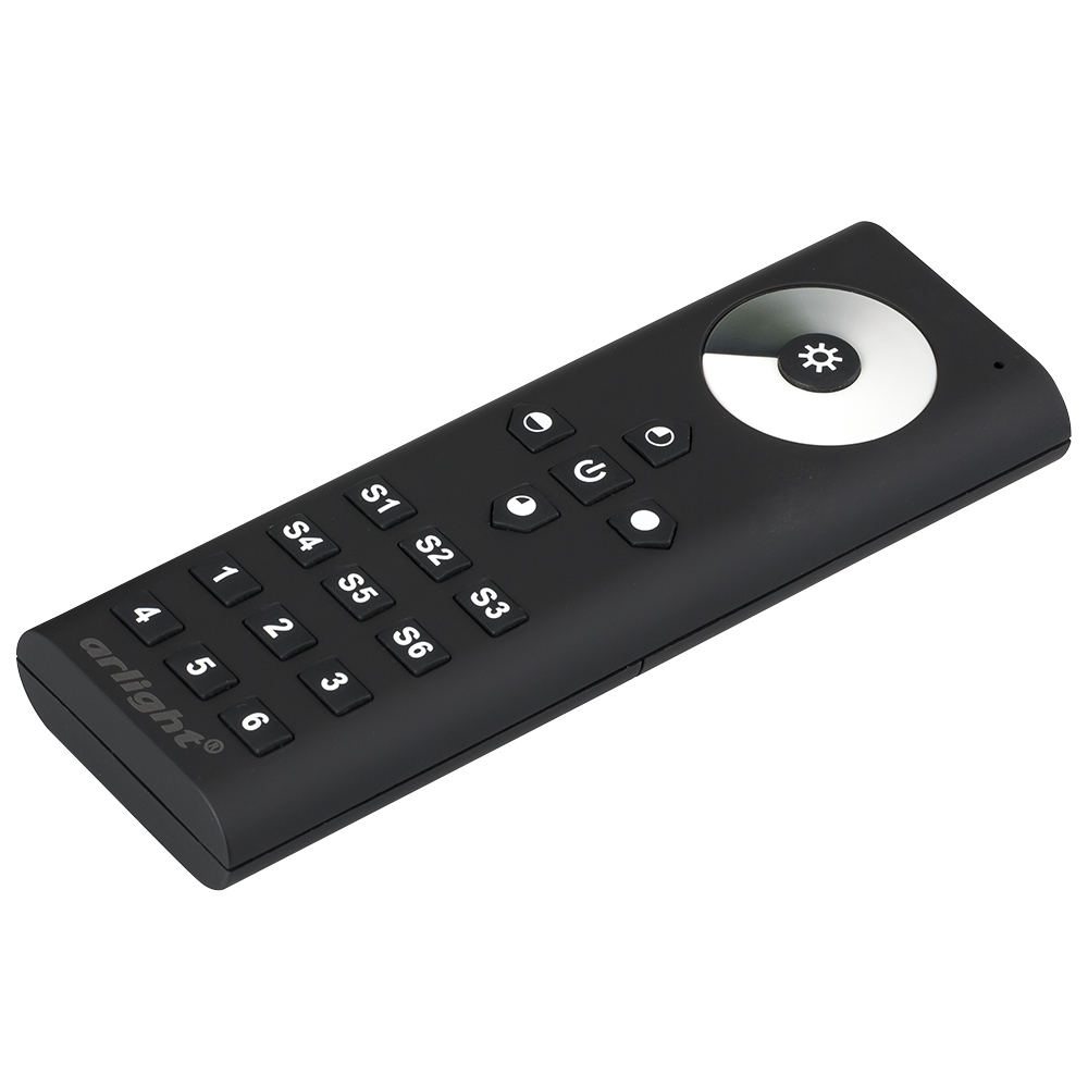 Мультизонный пульт RF (868MHz) с сенсорным кольцом выбора яркости, для белых лент, 6 зон управления. Черный матовый корпус. Используется с контроллерами серии SR-1009x. Размеры 140х48х16 мм. Держатель в комплекте.