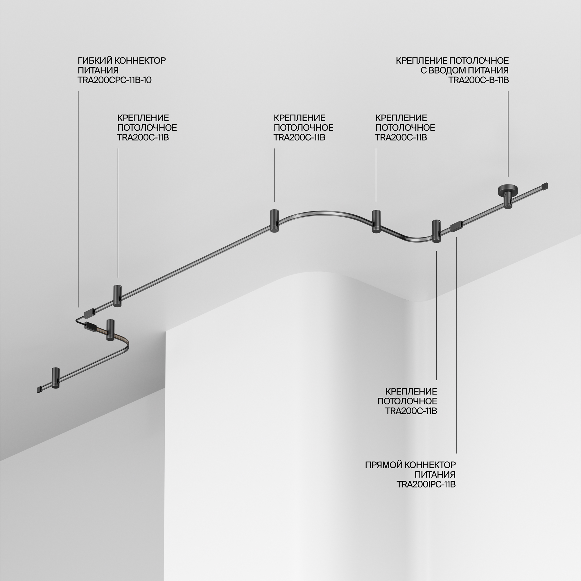 Гибкий шинопровод в черном цвете для создания световых композиций в трековой системе Flexity. Универсальная длина - 5м.
