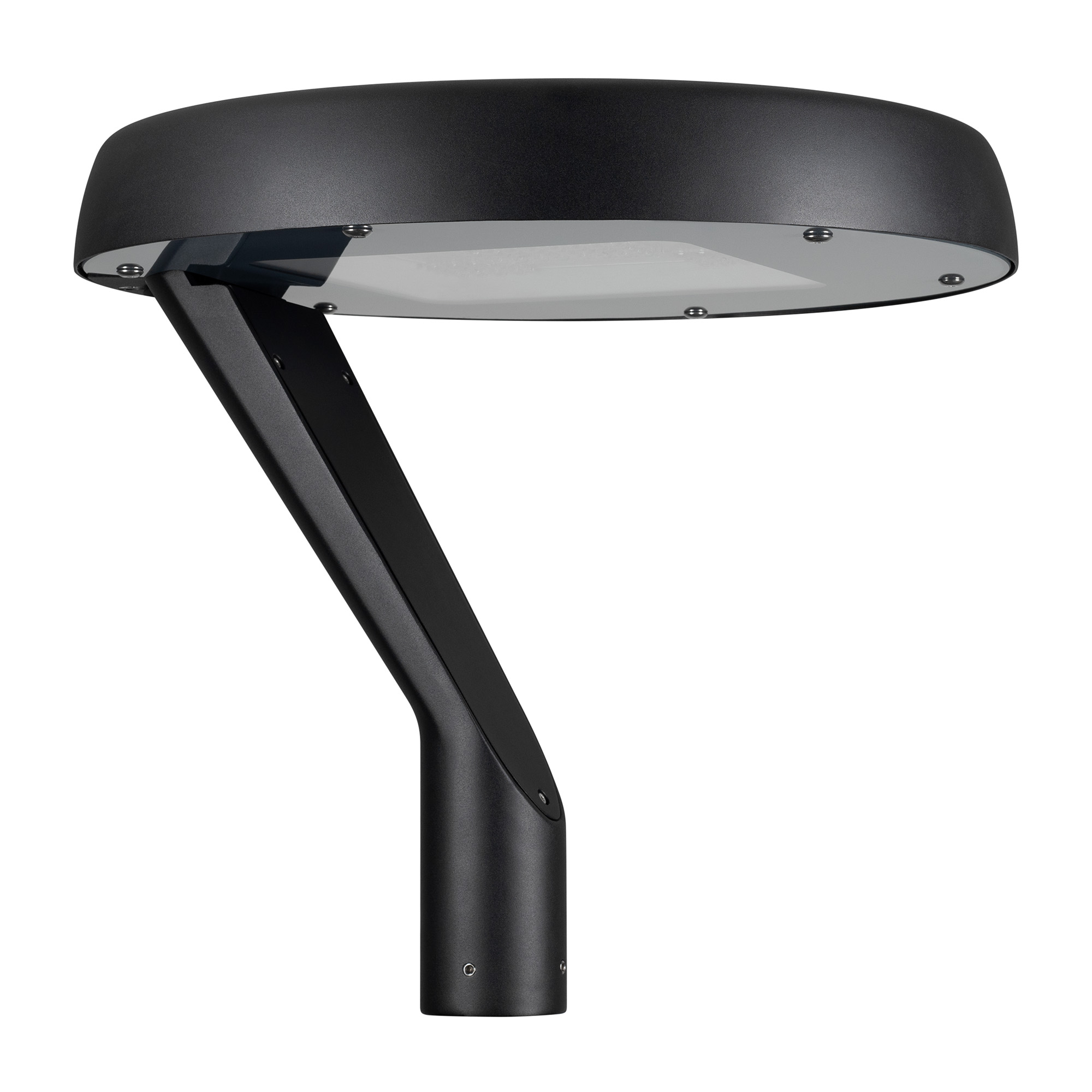 Поставка под заказ от 5 шт. Венчающий светодиодный светильник. Мощность 50 Вт, св. поток 7100 лм, 141 лм/Вт, тёплый 3000 K, CRI>80, угол 145x40°, напряжение питания 230 В. Черный корпус из алюминия, экран стекло, степень защиты IP65. led-ted.ru Размер: диаметр 510 мм, высота 480 мм. Монтаж на вертикальную опору диаметром 76 мм.