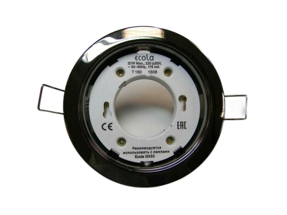 Светильник под лампу с цоколем GX53. Макс. мощность ламы: 13Вт. Цвет: чёрный хром. Установочная высота: 34мм. Питание: 220-240В. 50Гц.
