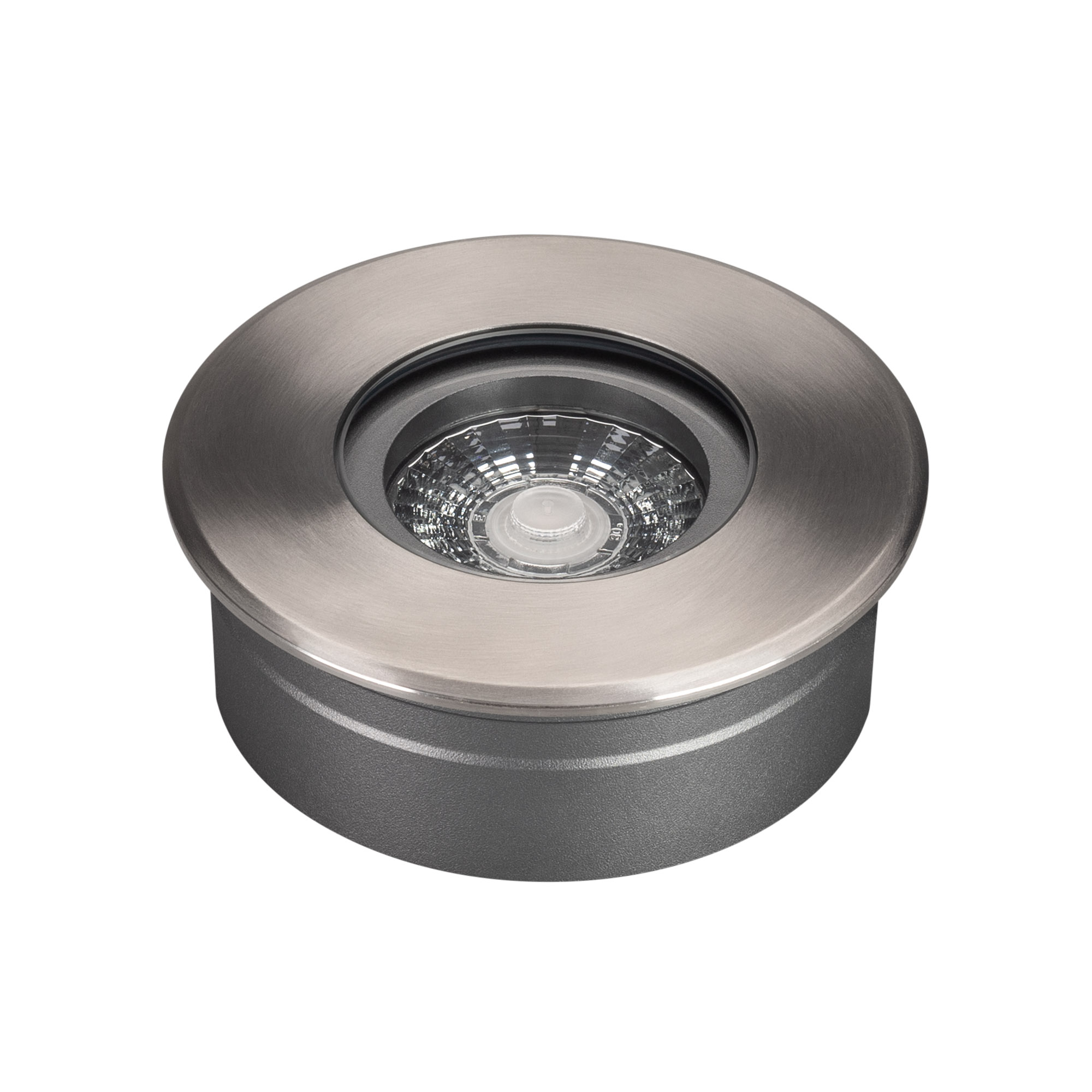 Встраиваемый светодиодный светильник для грунта и пола. Мощность 6Вт, угол освещения 35°, световой поток 400лм, цвет ТЕПЛЫЙ 3000К, CRI(Ra)>80. Круглый влагозащищенный корпус IP67, внешняя рамка из нержавеющей стали AISI 316. Экран закалённое стекло. Питание 24V, 6Вт. led-ted.ru Размер Ø110x38мм. Установка в отверстие Ø98x35мм. ВНИМАНИЕ! Светильник не поддерживает регулирование светового потока ШИМ.
