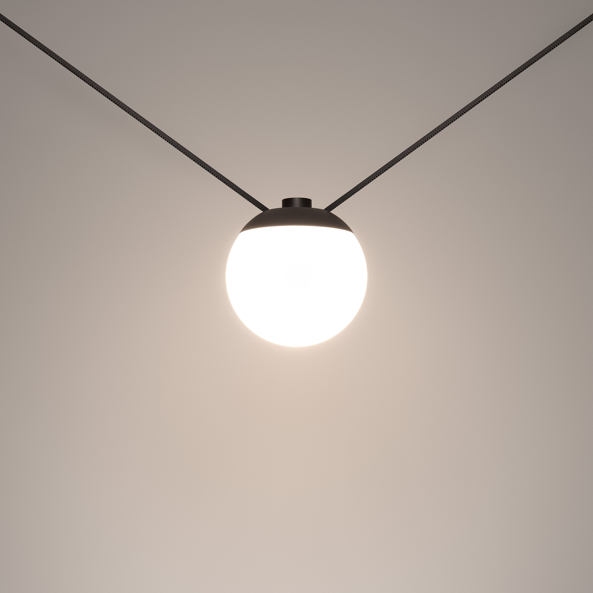 Светильник ART-INBELT-SFERO-R140. Мощность 7 Вт, св. поток 825 лм, 118 лм/Вт, изменяемая цветовая температура 2700-6500 К, CRI>92, угол 240°, напряжение питания 48 В. Степень защиты IP20. Размер: Ø140 x 131 мм. Монтаж на токопроводящий ремень INBELT. Цвет корпуса черный. DALI.