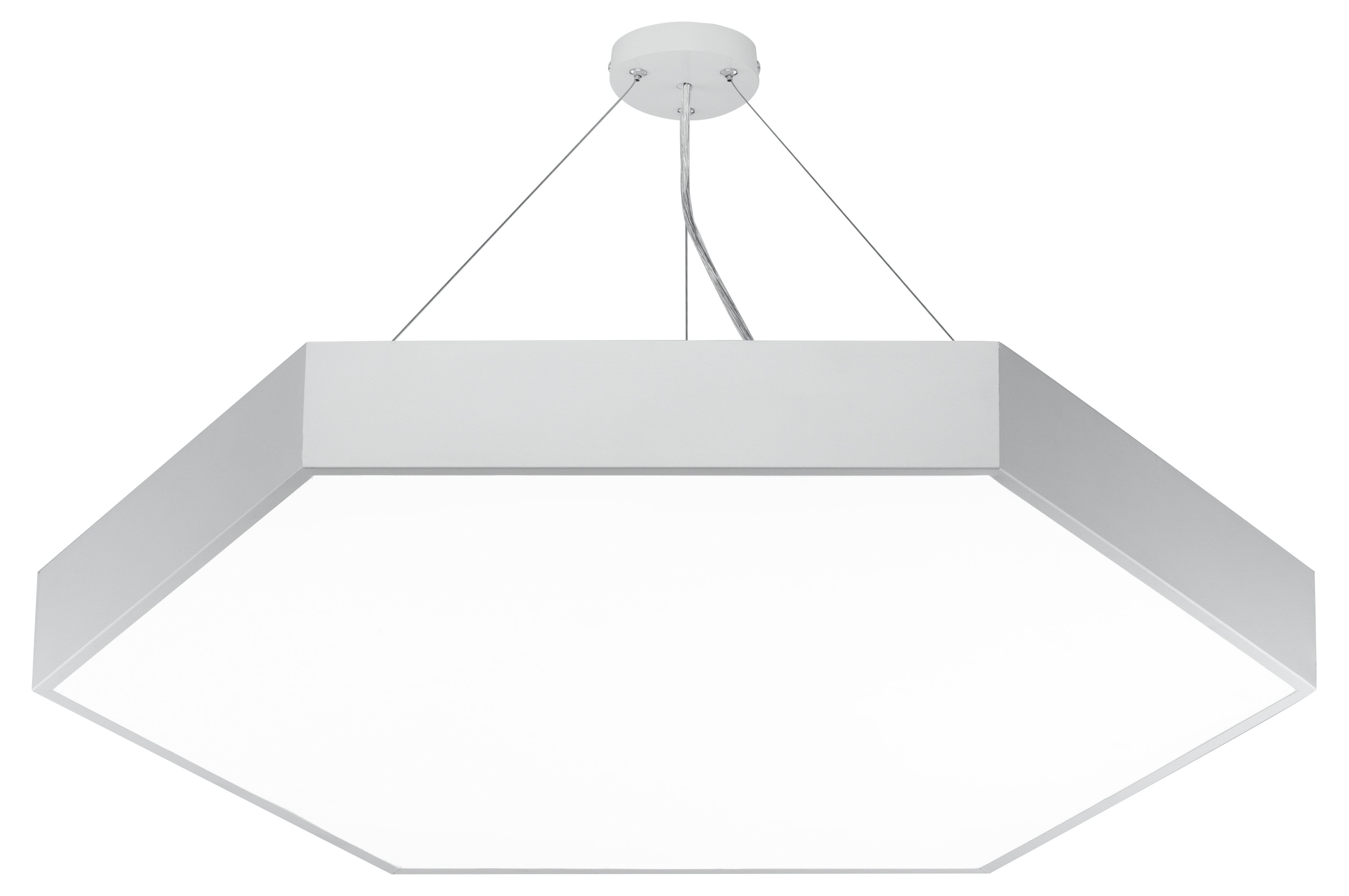 Светильник LED Geometria SPO-122-W-40K-066 Hexagon 66Вт 4000К 5300Лм 800*800*80 белый подвесной драйвер внутри Подвесные светильники Geometria различных форм и размеров позволят реализовать дизайнерские идеи освещения пространства. Для каждой модели доступно 2 варианта цвета: белый и черный. Предусмотрена возможность регулировки высоты установки до 1м при помощи троса. В комплект поставки входит круглое крепление к потолку. Подвесная система максимально эстетична, питание идет по тросу. Корпус изготовлен из стали, покрытой порошковой окраской. Драйвер находится внутри светильника, входит в комплект.