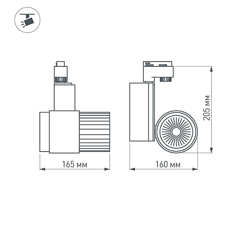 Подвесной светильник для треков/шин 2 провода. Светодиод CREE 40W цвет ТЁПЛЫЙ 3000K св.поток 3200-3600лм угол 24°. Белый корпус черная рамка и радиатор. Мощность 40Вт питание AC180-240V. Максимальные габариты HxLxW: 205х165х160 мм