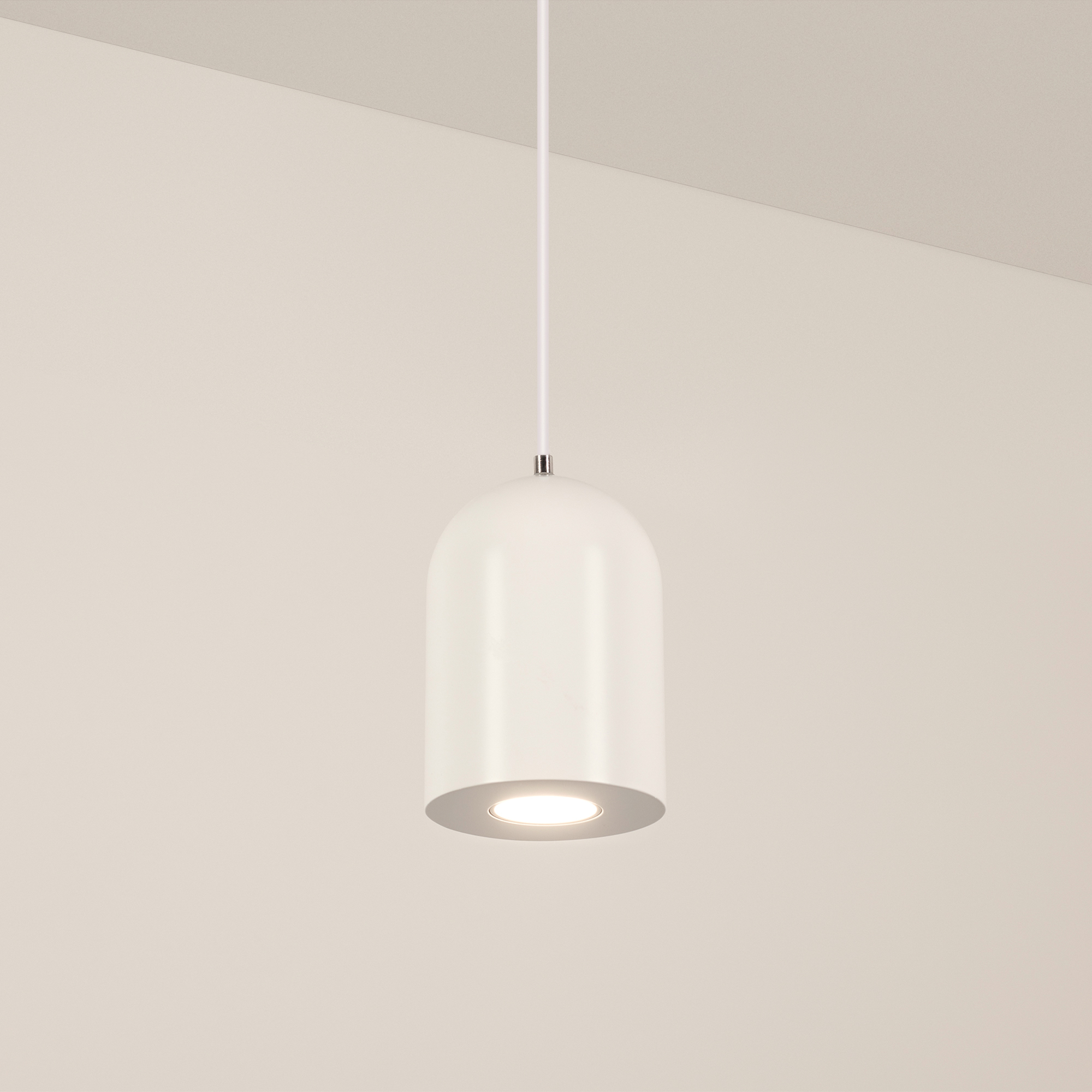 Подвесной светильник. Мощность 9 Вт, св. поток 650 лм, 73 лм/Вт, теплый 3000 K, CRI>80, угол 39°, напряжение питания 230 В. Белый корпус из алюминия, экран , степень защиты IP40. Размер: диаметр 71 мм, высота 100 мм. Монтаж подвесной, длина подвеса 1500мм, регулируемая. Габариты чаши 50x95 мм. Драйвер 28-42 В, 250 мА, пульсация <5%.