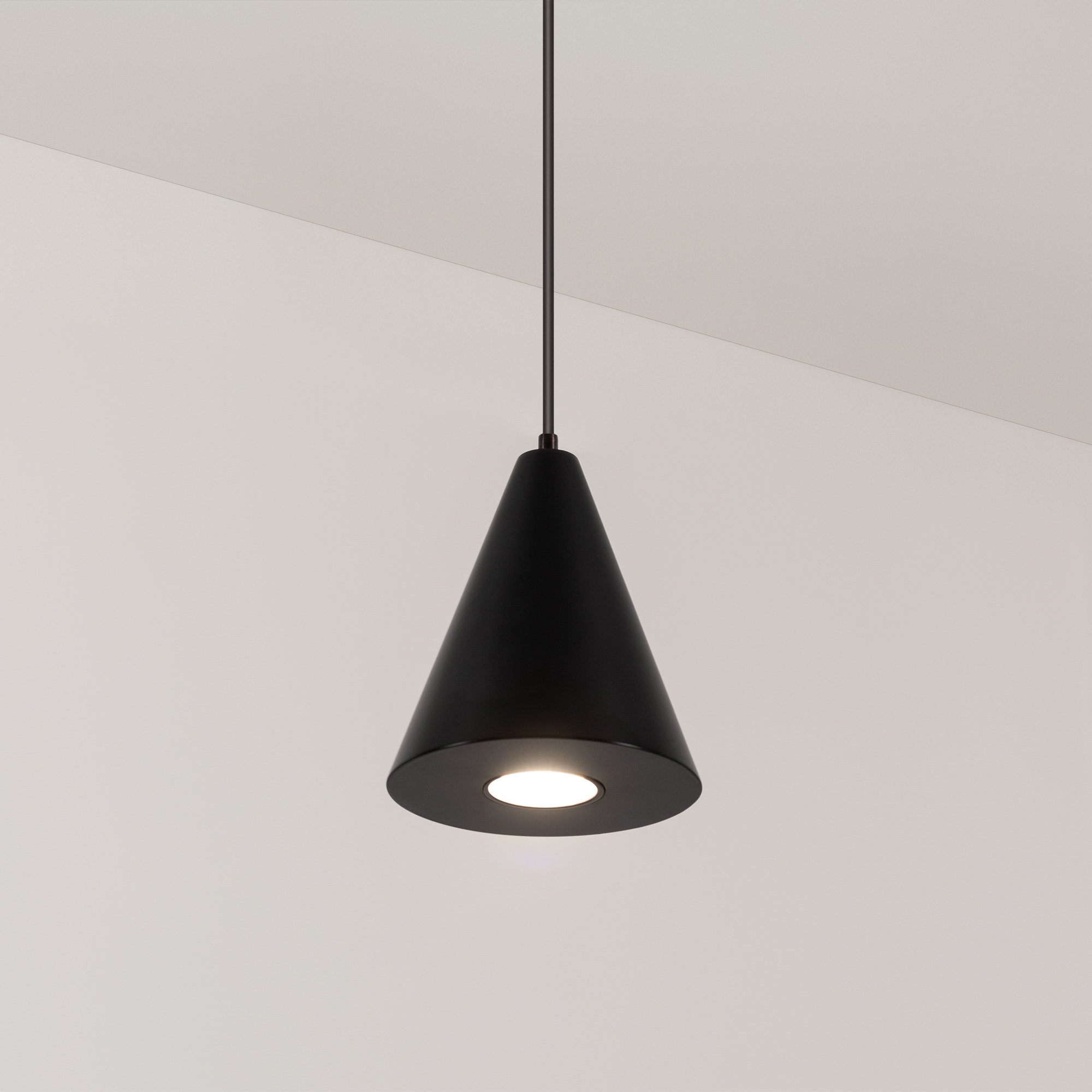 Подвесной светильник. Мощность 9 Вт, св. поток 650 лм, 73 лм/Вт, дневной 4000 K, CRI>80, угол 39°, напряжение питания 230 В. Черный корпус из алюминия, экран , степень защиты IP40. Размер: диаметр 83 мм, высота 97 мм. Монтаж подвесной, длина подвеса 1500мм, регулируемая. Габариты чаши 50x95 мм. Драйвер 28-42 В, 250 мА, пульсация <5%.