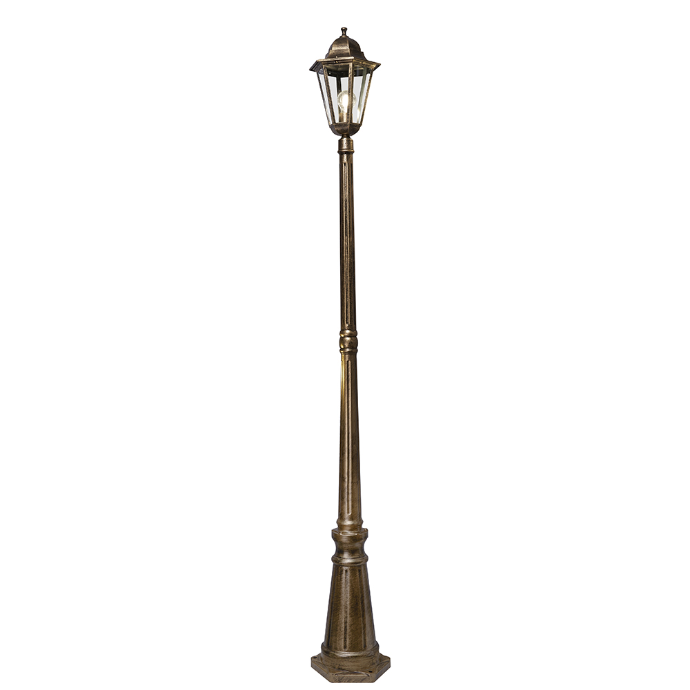 Светильник садово-парковый, серии «Классика», (НТУ) 6211/PL6211 100W, E27, 230V, IP44, цвет черное золото, 6-и гранник, столб, 2000*195*2130мм