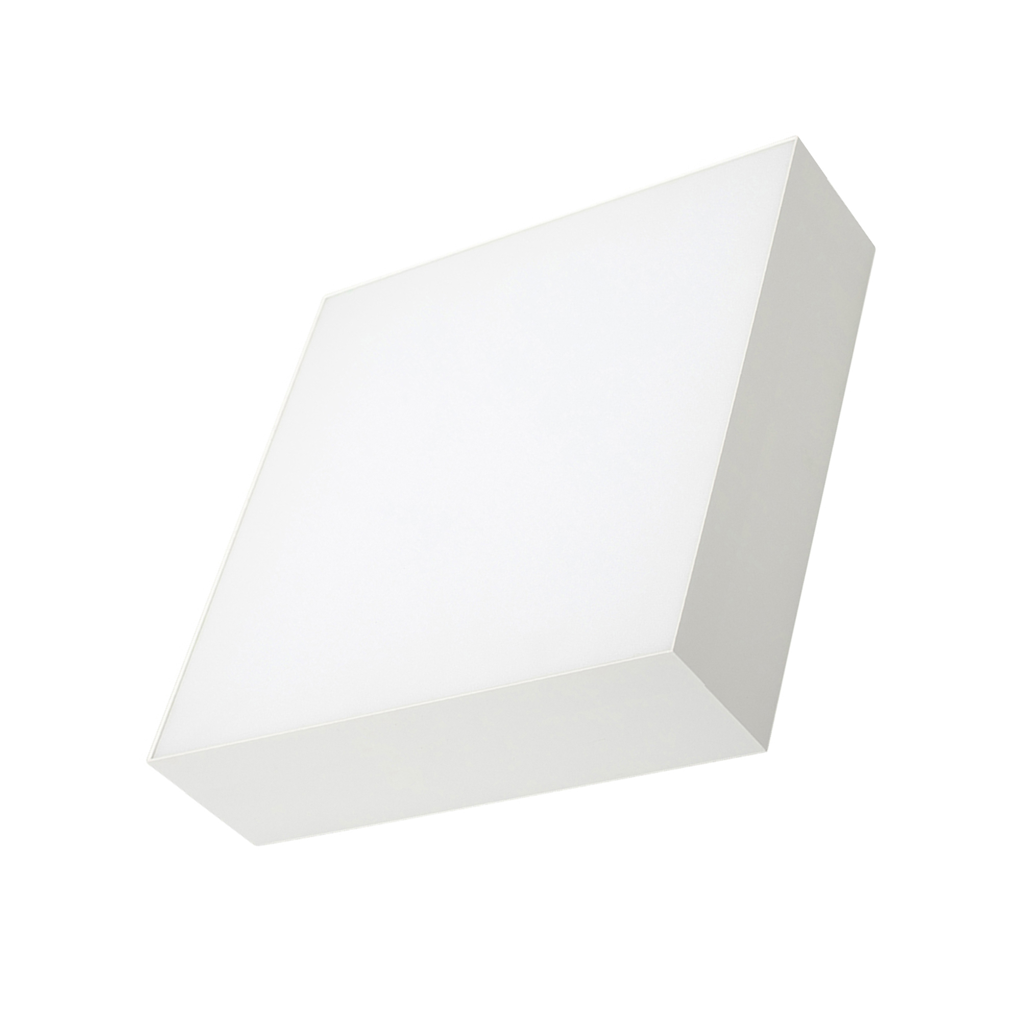 Накладной светильник 27 Вт, белый квадратный корпус. Цвет ТЕПЛЫЙ БЕЛЫЙ 3000 K, св.поток 2680лм, CRI(Ra)>80, угол 120°. Размер (ДхШхВ) 220x220x55 мм. Питание AC 176-240 В, 27 Вт, драйвер встроенный (500мА, 40-55В).