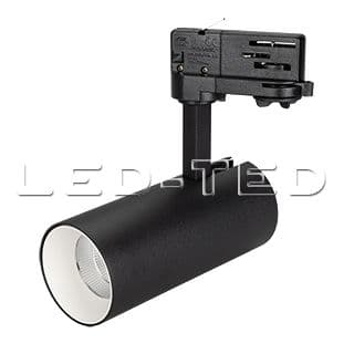 Трековый светильник 8Вт черный круглый корпус белая вставка металл. Цвет свечения ДНЕВНОЙ 4000K св.поток 570лм CRI(Ra)>80 угол 40°. Размер DxLxH 65x150x150мм встроенный драйвер PRI:220-240VAC SEC:DC 200mA 30-43V 8Вт.