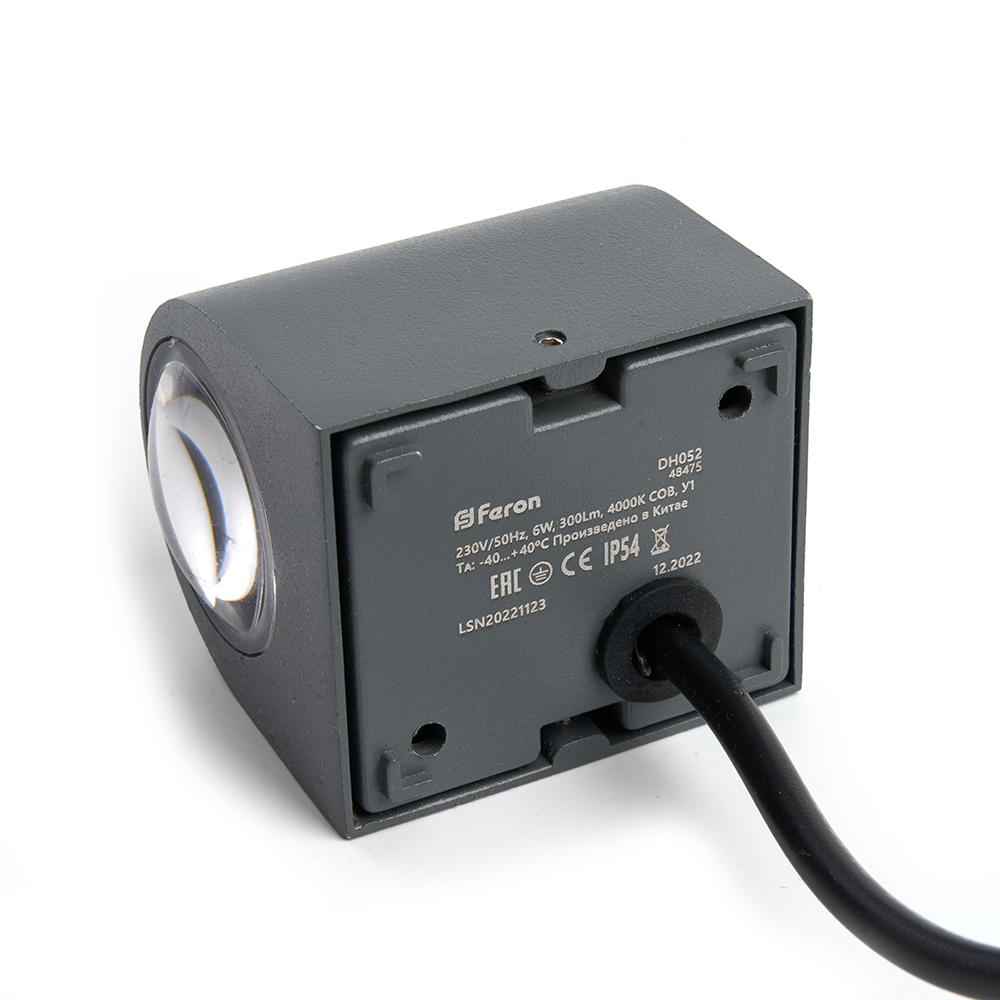 Светильник уличный светодиодный, на стену (ДБУ) DH052, серия Бостон, 6W, 3000К (белый натуральный), 230V/50Гц, 400Lm, IP54, 1LED*COB, класс защиты 1, раб.t -40°C...+40°C, цвет серый, корпус алюминий, 55*55*65мм,