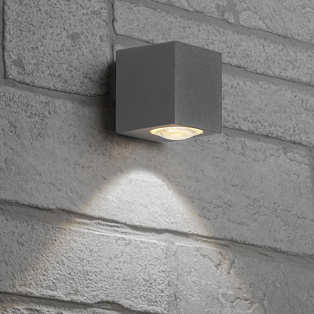 Светильник уличный светодиодный, на стену (ДБУ) DH054, серия Бостон, 6W, 4000К (белый натуральный), 230V/50Гц, 400Lm, IP54, 1LED*COB, класс защиты 1, раб.t -40°C...+40°C, цвет серый, корпус алюминий, 55*55*65мм,