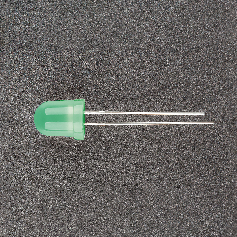 Выводной светодиод, круглый, диффузная зеленая линза D=8мм. Цвет свечения ЗЕЛЁНЫЙ (синий тон) 495-510нм, яркость IV=1000-1500mcd при IF=20mA, VF(V)=2.9-3.3V. Угол 50°. Рекомендуемый постоянный рабочий ток <16-17mA