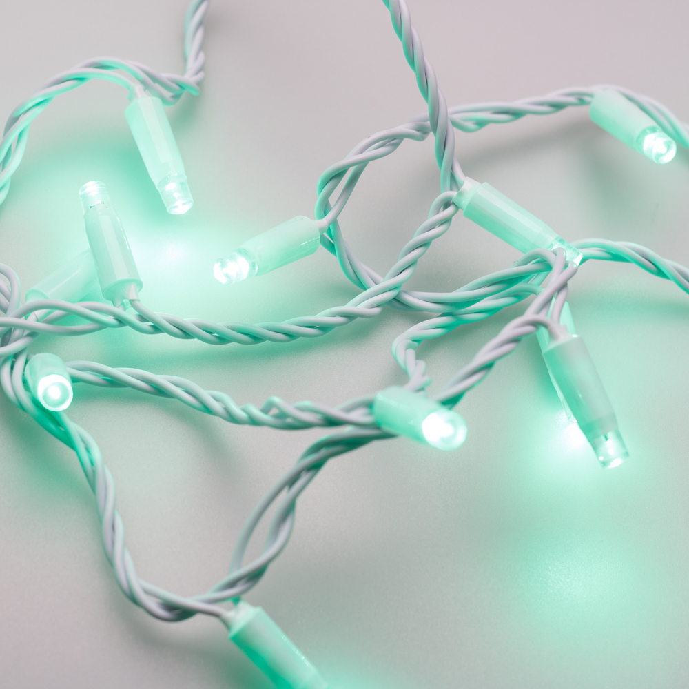Светодиодная гирлянда "НИТЬ" серии Classic. Длина 10000 мм. Цвет светодиодов ЗЕЛЁНЫЙ. Материал провода - белый ПВХ. Диаметр провода 2.3 мм. Количество светодиодов 100 шт. Постоянное свечение. Размер светодиодов 7 мм с вогнутой внутрь линзой и защитным колпачком. Напряжение питания DC 230V, потребляемая мощность 7W. Степень защиты от воздействия окружающей среды IP65. Температурный режим работы от -30 градусов до +40 градусов по Цельсию. Предусмотрена возможность соединения 150 метров между собой без допол