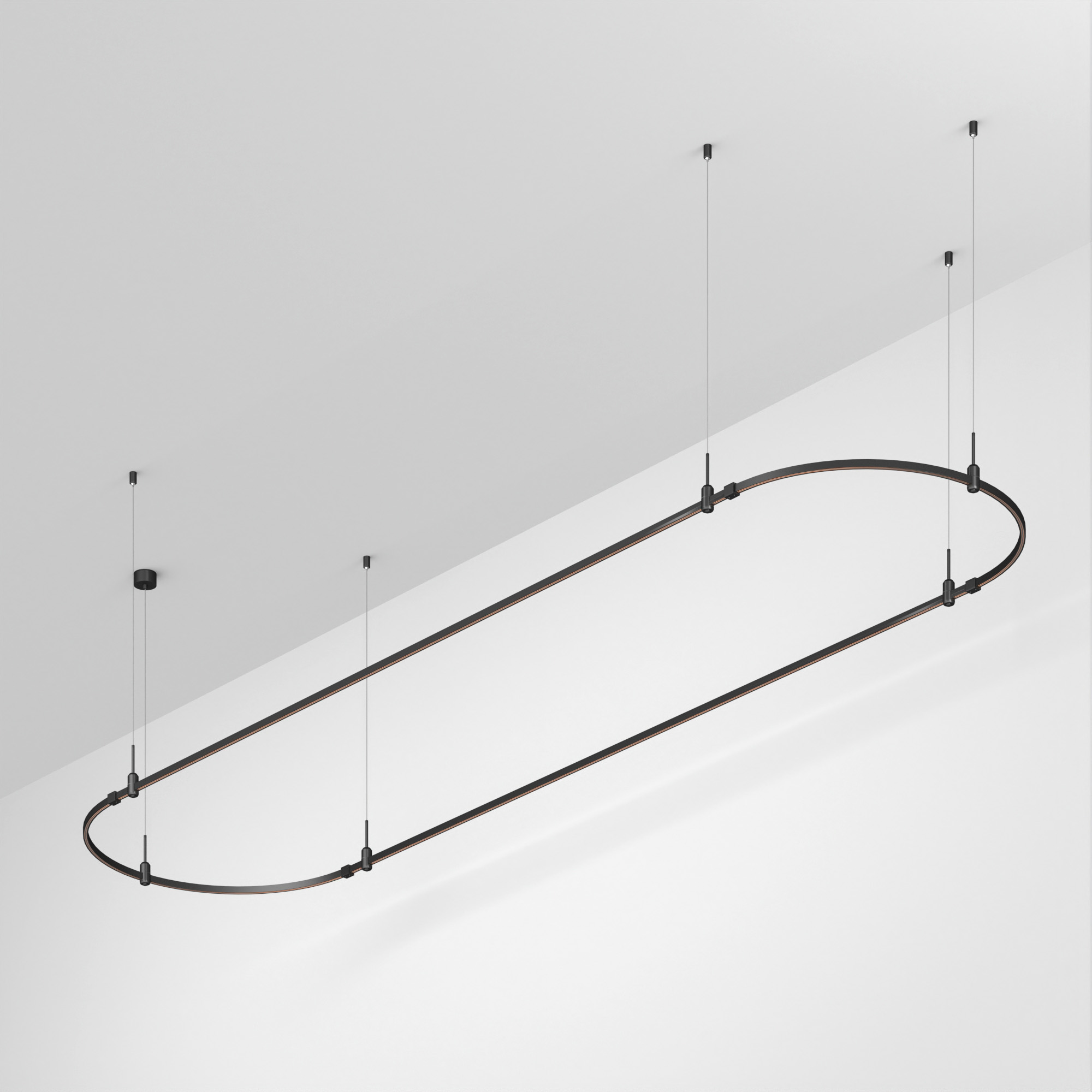 Подвесная конструкция APRIORI, форма овал. В комплекте треки с аксессуарами и гибкими подвесами. DC48V. Материал алюминий, цвет черный. led-ted.ru Размер ДxШxВ: 4000x1000x22мм. Светильники и источники питания приобретаются отдельно.