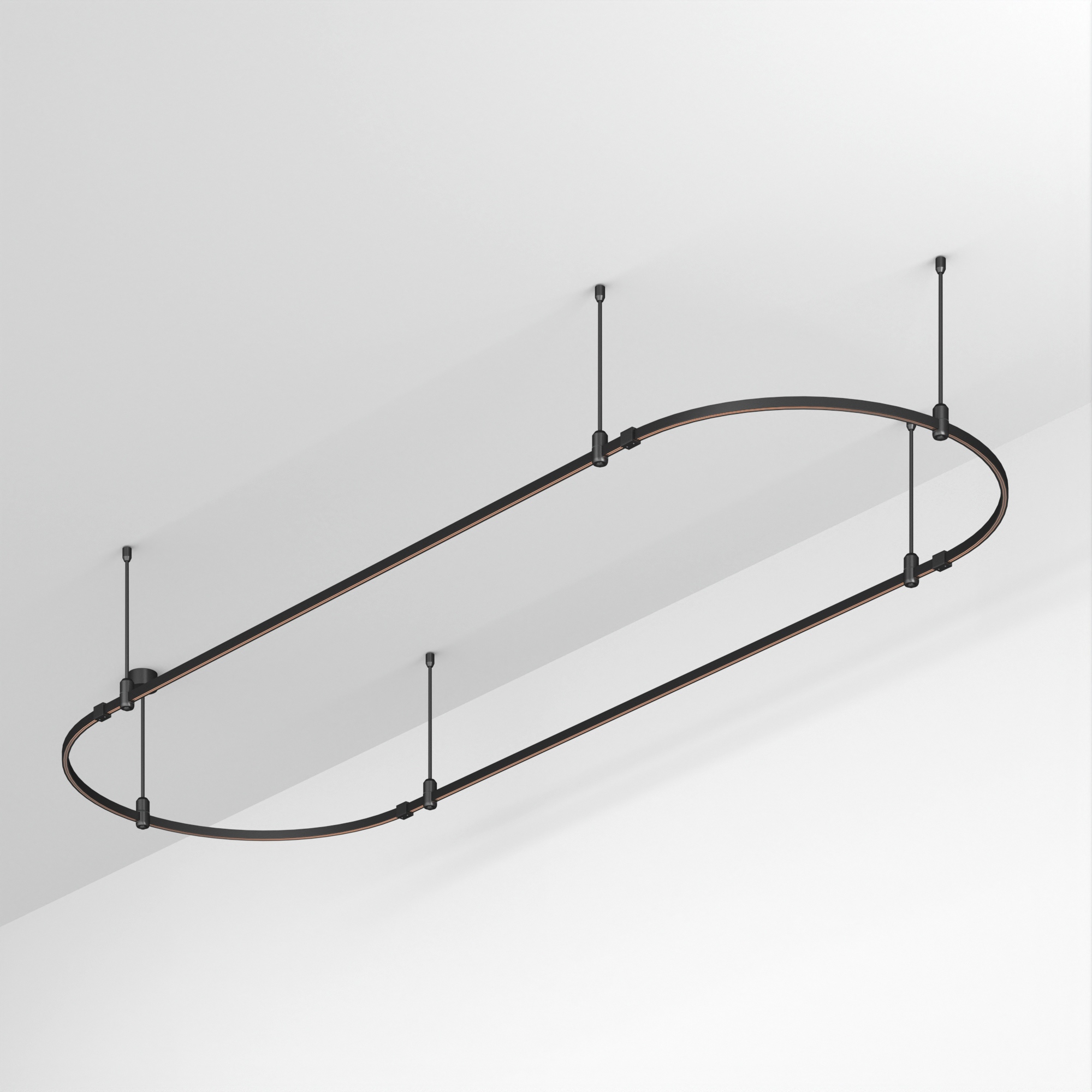 Подвесная конструкция APRIORI, форма овал. В комплекте треки с аксессуарами и жесткими подвесами длиной 400мм. DC48V. Материал алюминий, цвет черный. led-ted.ru Размер ДxШxВ: 3000x1000x22мм. Светильники и источники питания приобретаются отдельно.