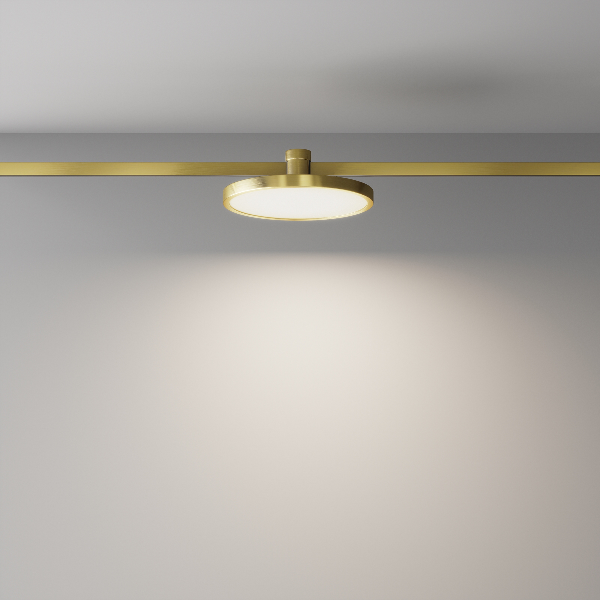 Корпус из алюминия. Два цвета арматуры – черный (порошковое окрашивание) и латунь (гальваническое покрытие), отлично сочетающиеся между собой. Светильник с плоской конструкцией. Две модификации: с прямым световым потоком и с подсветкой. Источник света – светодиоды Osram с цветовой температурой 3000К, углом рассеивания 120 °. Фиксация на шинопровод производится посредством надежных неодимовых магнитов. Светильники свободно перемещаются на шине в произвольном направлении. Функция диммирования поддерживается только в связке с блоками питания DALI/0~10V.
