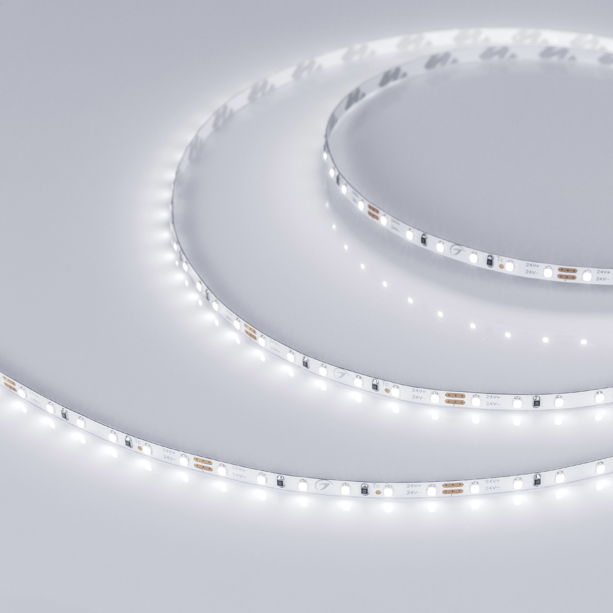 Узкая маломощная Лента MICROLED, светодиоды smd 2216, 120шт/м 600шт на 5м, белая плата 4мм, скотч 3М. Цвет БЕЛЫЙ 5500-6000K. Питание 24V, мощность 5,4 Вт/м 27 Вт на 5м, угол 120°, цветопередача CRI>90. Размеры 5000х4х1.2мм. Мин.отрезок 50мм, 6 светодиодов. Цена за 1м. 024418