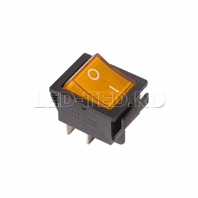 Выключатель клавишный 250V 16А 4с ON-OFF желтый с подсветкой REXANT