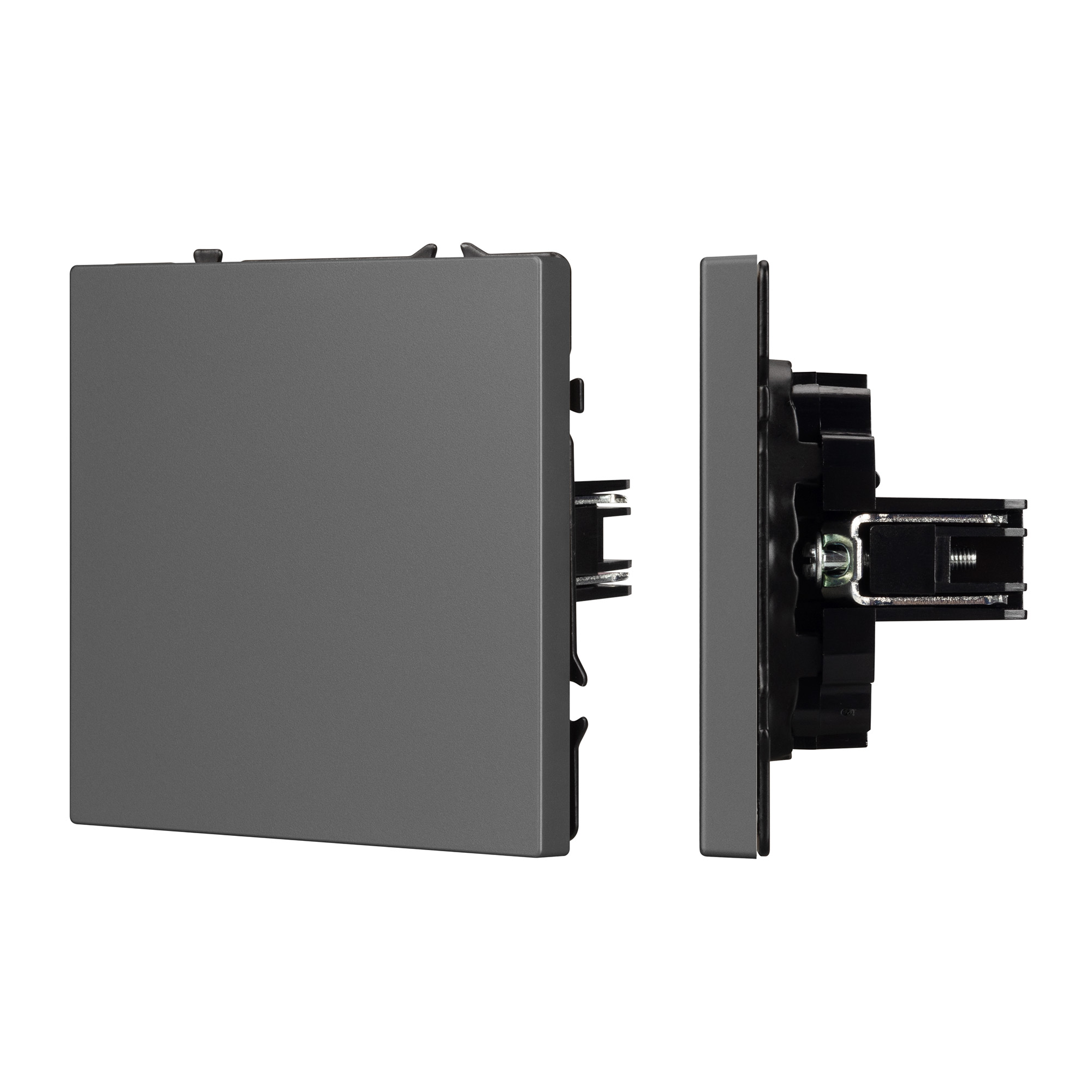 Заглушка на 1 пост. Цвет - серый базальт, с Soft-Touch покрытием. Без декоративной рамки. Уровень пылевлагозащиты IP20. Заглушка устанавливается в стандартный подрозетник круглого сечения диаметром 60мм.