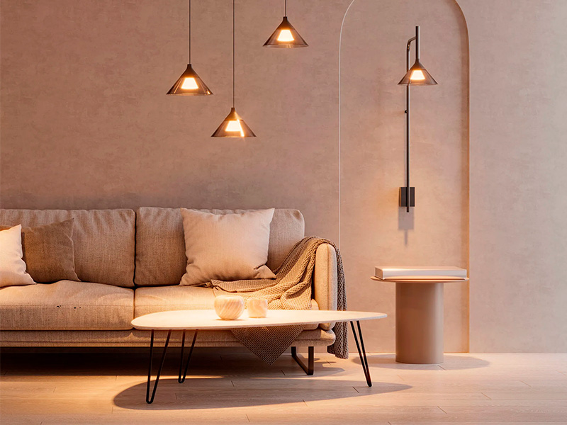 Дымчатое стекло и чёрная арматура читаются графично и спокойно — светильники не спорят с мебелью и архитектурой, а собирают сцену светом. Если вам нужен не просто источник света, а управляемый акцент с хорошей цветопередачей и понятным управлением, OMBRELLO закрывает эту задачу без лишних декоративных жестов.