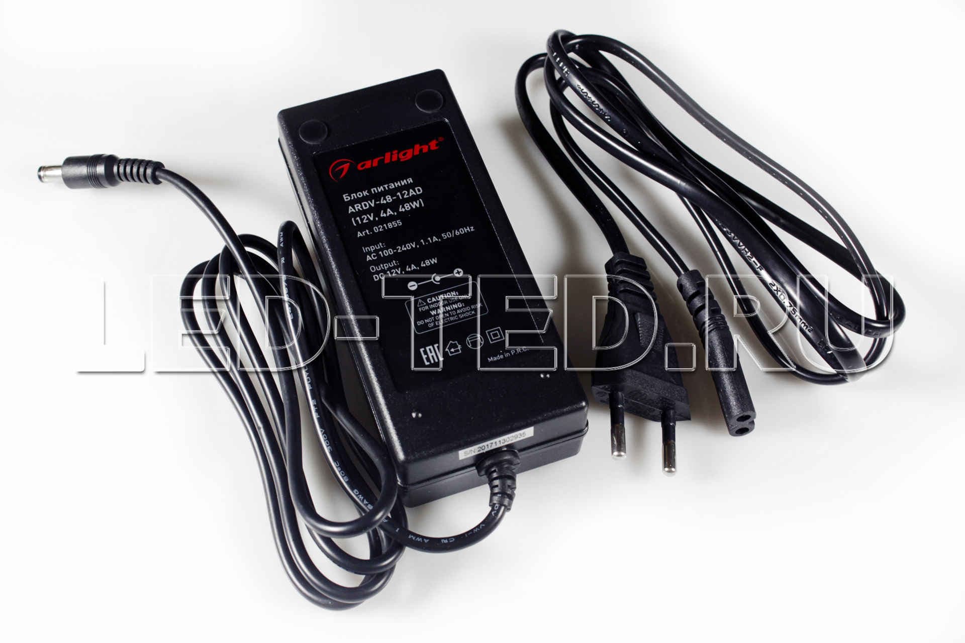Сетевой адаптер с гальванической развязкой для светодиодных лент 12 В (черный корпус). Мощность 48 Вт. Вход:100-240VAC, Выход: DC12V 4A, длина кабеля 1,2 м, коннектор 5.5x2.1x10мм. Размер 119x51x31 мм. Гарантия 2 года. 021855