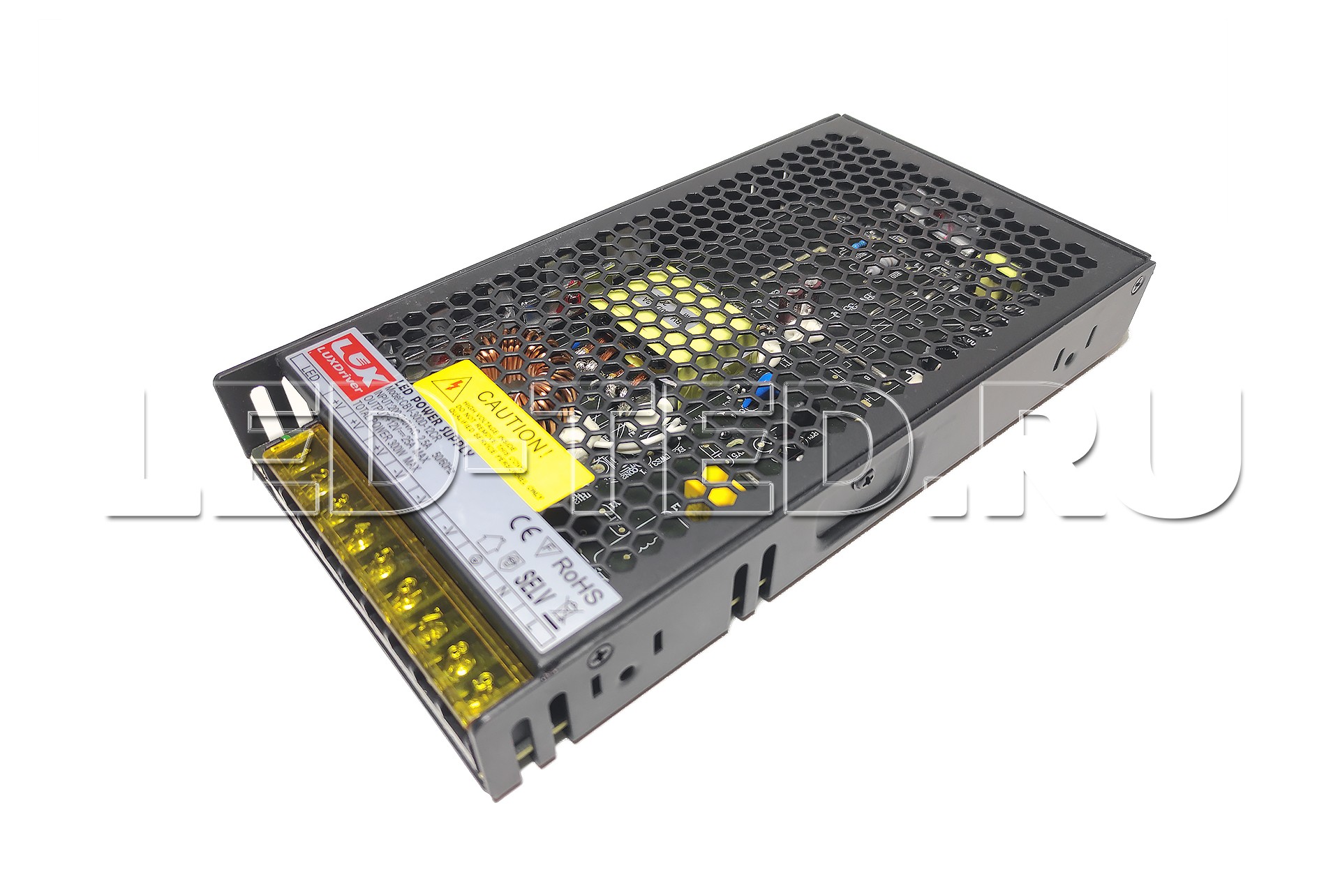 Блок питания эконом класса в ультратонком металлическом кожухе БЕЗ ВЕНТИЛЯТОРА, модель CBV-300-12, для светодиодных изделий. Металлический перфорированный корпус размеры 215x115x30мм, степень защиты оболочки IP20. Эксплуатировать можно при температуре от -20 до +60°С. Входное переменное напряжение 200-240В, выходное постоянное напряжение 12В. Мощность блока питания 300Вт 25А. Гарантийный срок 2 года. Произведено в Китае, поставщик LED-TED.