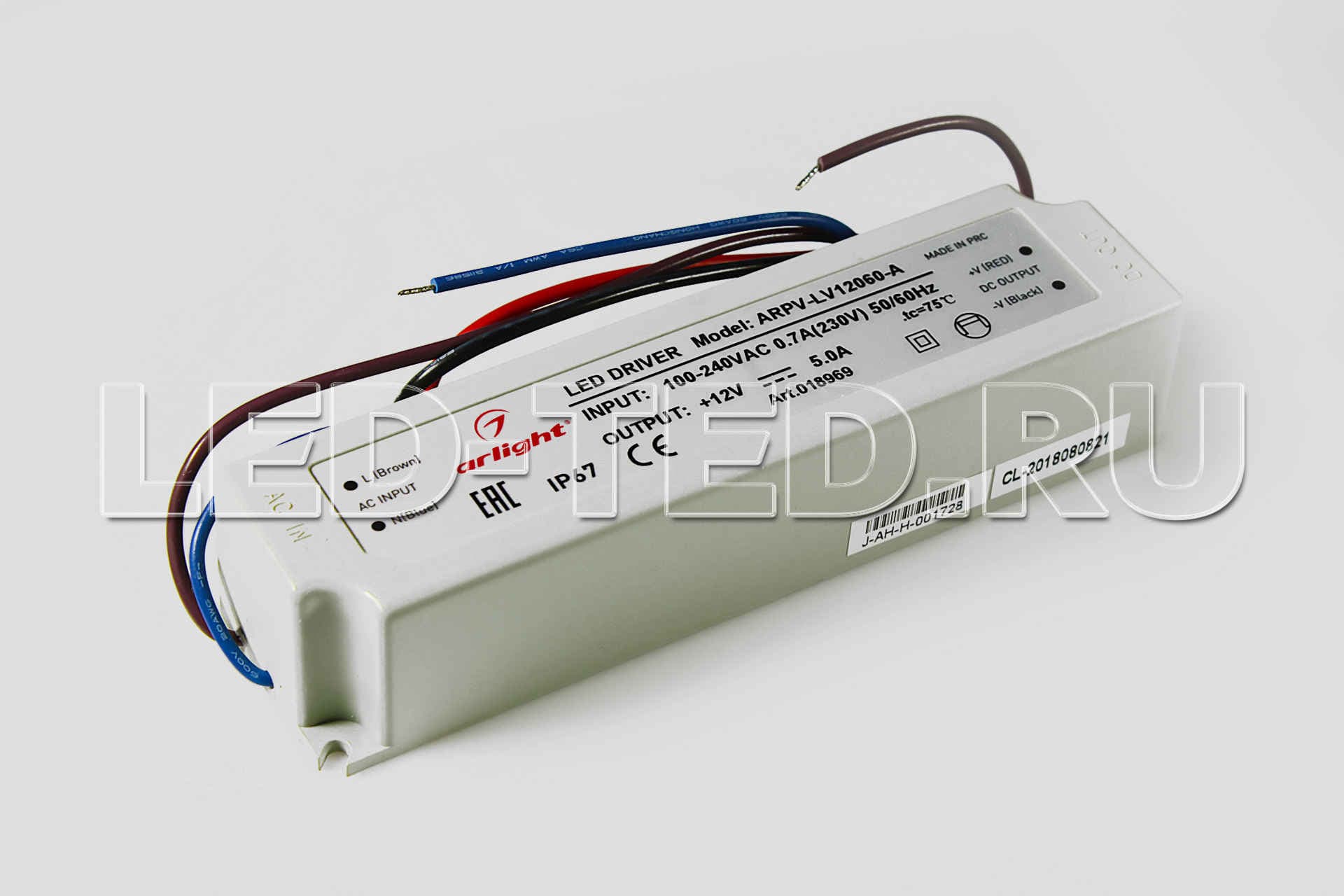Герметичный блок питания ARPV-LM12060 12V 5A 60W узкий импульсный 018969 Arlight